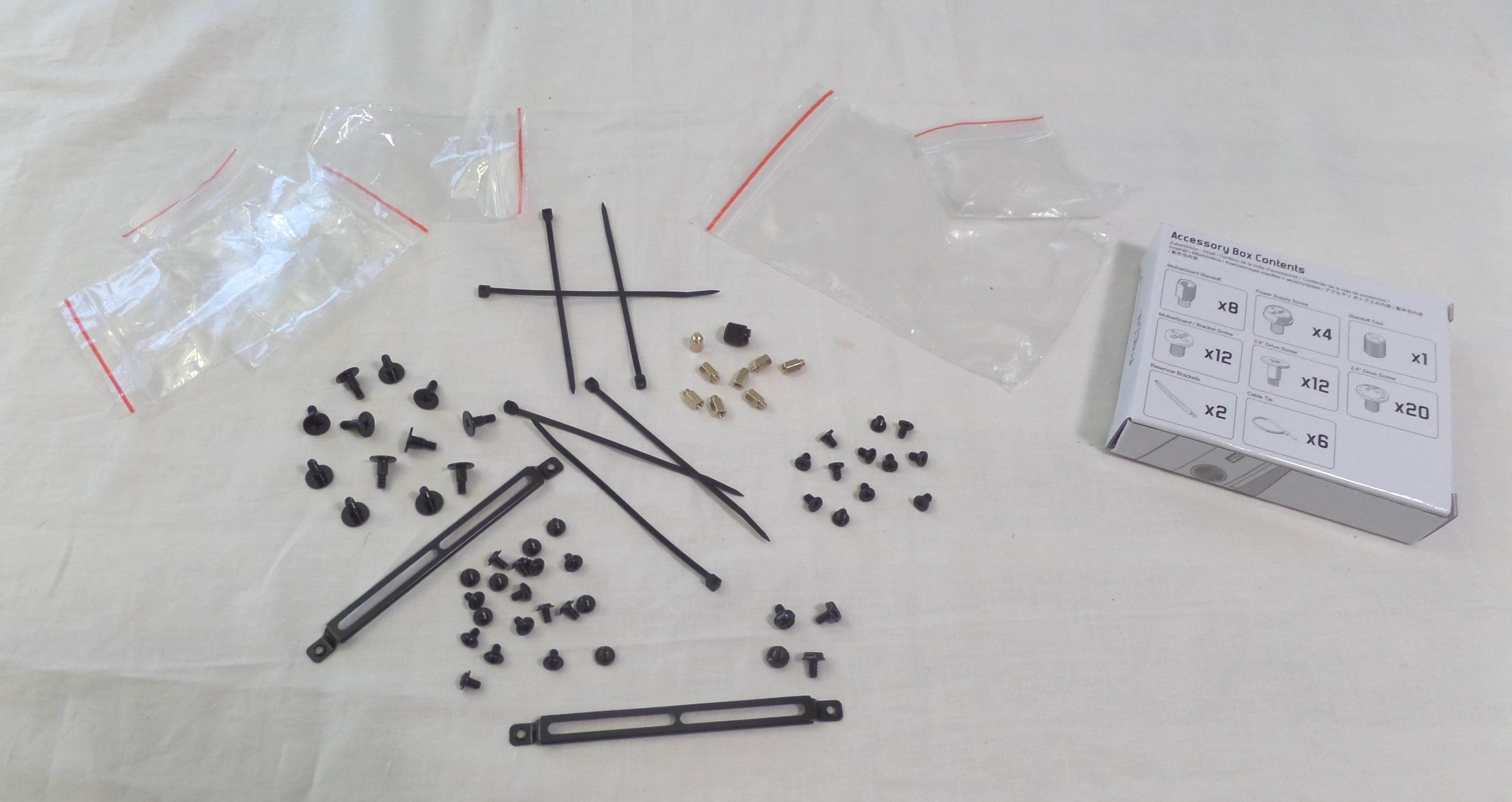 Inside of the Accessories box, you will find a wealth of screws, brackets and cable ties, so let’s break it down a bit.