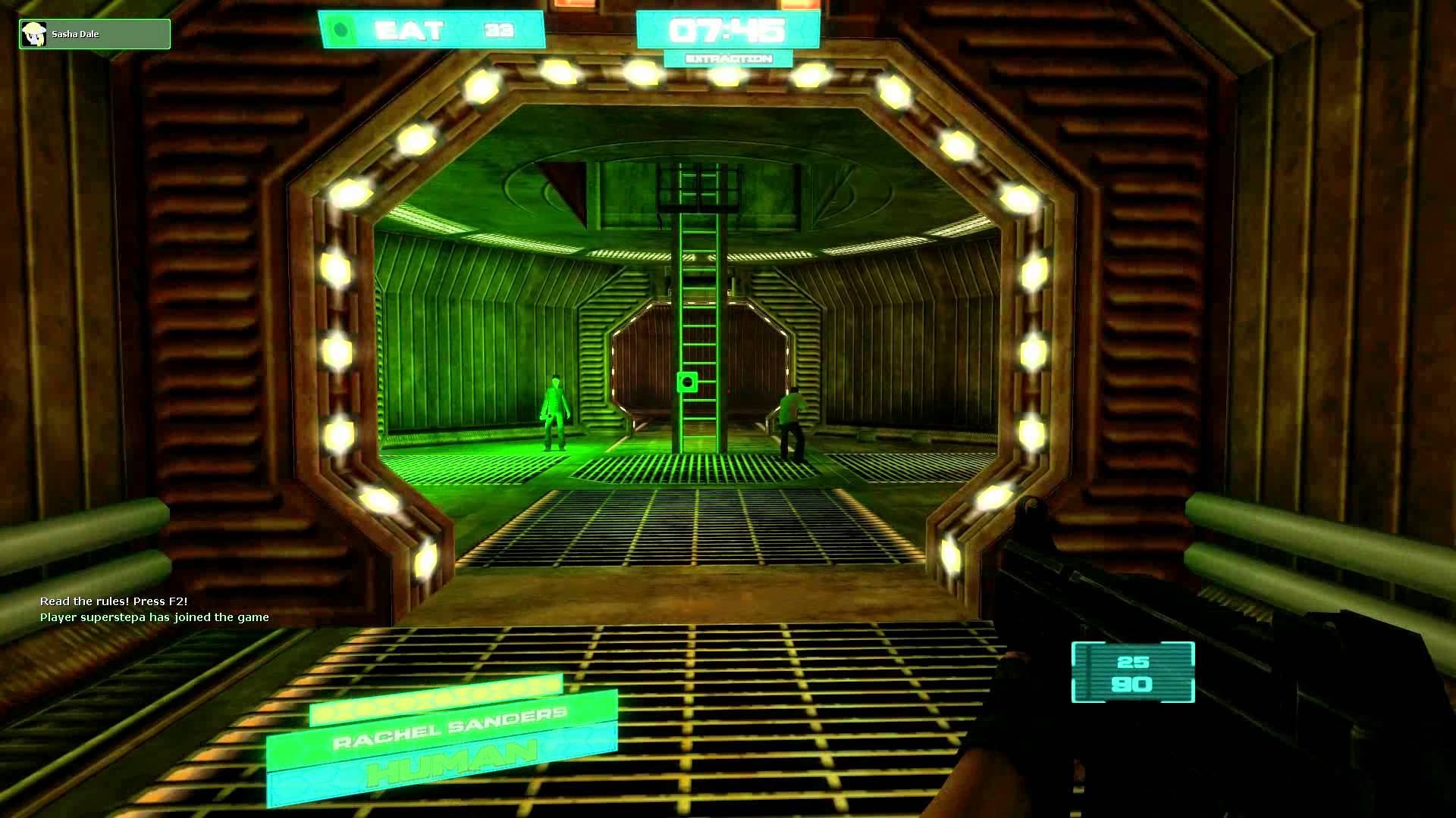 Before the round starts players should run and collect the best gun they can find before roles get given to people, this puts you at a good chance of defending if you happen to become a human. If a human dies by a gun, they become a swarm alien. The swarm alien is a very fast, small alien which has the fastest sprint. Be careful not to take damage though as a swarm alien has little health.