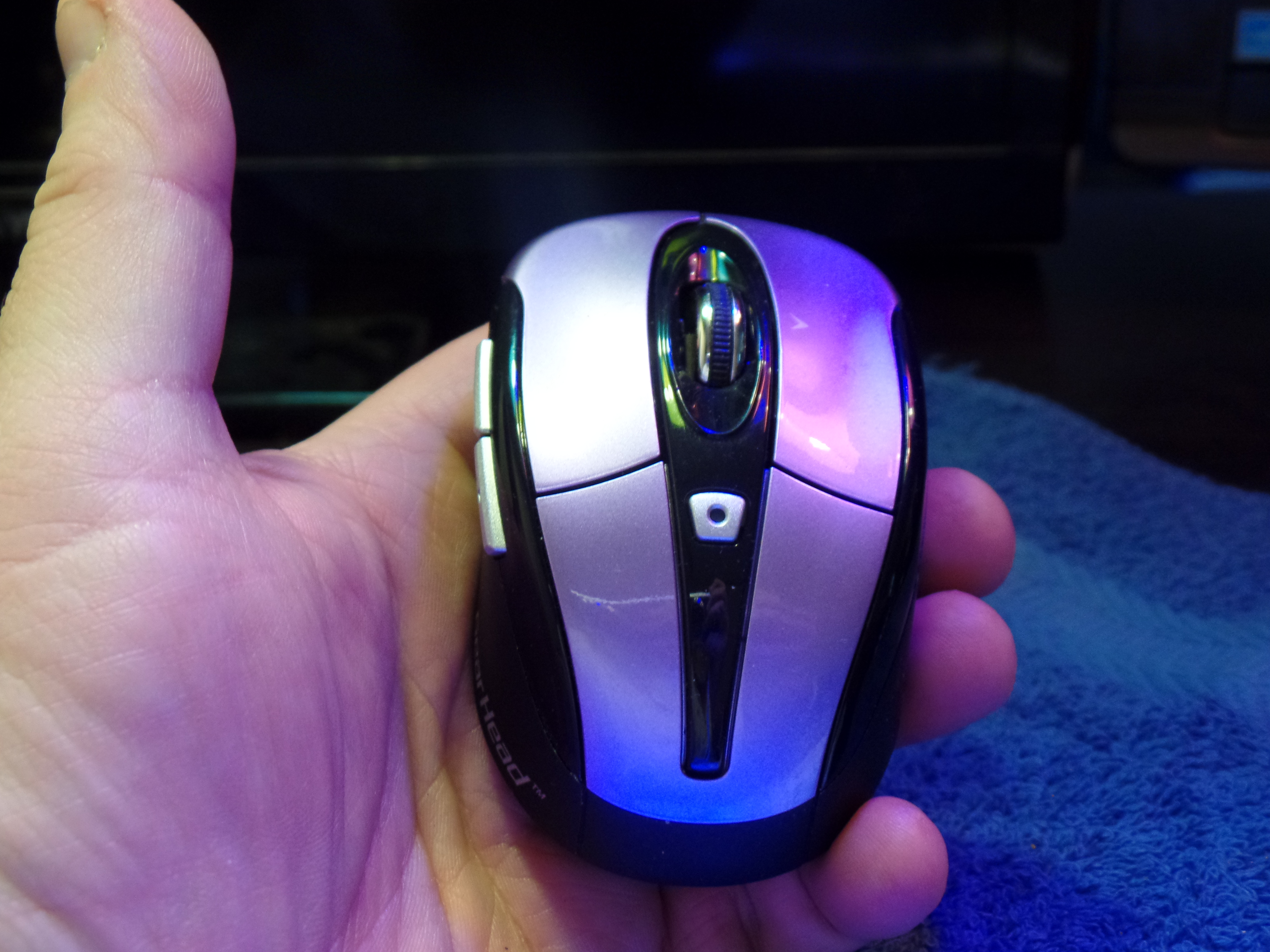 The company is Gear Head, and the mouse is a 2.4 Ghz device with several neat features. One is color. There are many different ones to choose from. They even have a camo one. The mouse is typical of many others, it has the standard two buttons and wheel in the center, but the wheel also moves left and right to use the left/ right scroll bars. On the left side are two buttons for media. This allows you to fast forward or reverse, or skip to the next song or back to the previous one. One other feature I love is the auto power off. I did not see this feature mentioned, but noticed that when left for a while, the mouse turned off. Simply clicking the small silver button below the wheel, turns it back on fast.