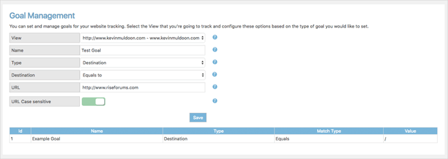 Google Analytics WD allows you to create and easily manage various goals which aim to track targeted activities that visitors complete on your website. Basically, you track how well your website performs on the targeted objectives critical for you. So, to set a goal you have to go to the goal management section in the plugin admin area. There are 3 goal types to choose from: duration, destination and pages/screens per session. Based on the goal type you’d like to set, you’re then required to configure the options for it. Once the created goal is accomplished, you’ll get notified about it.