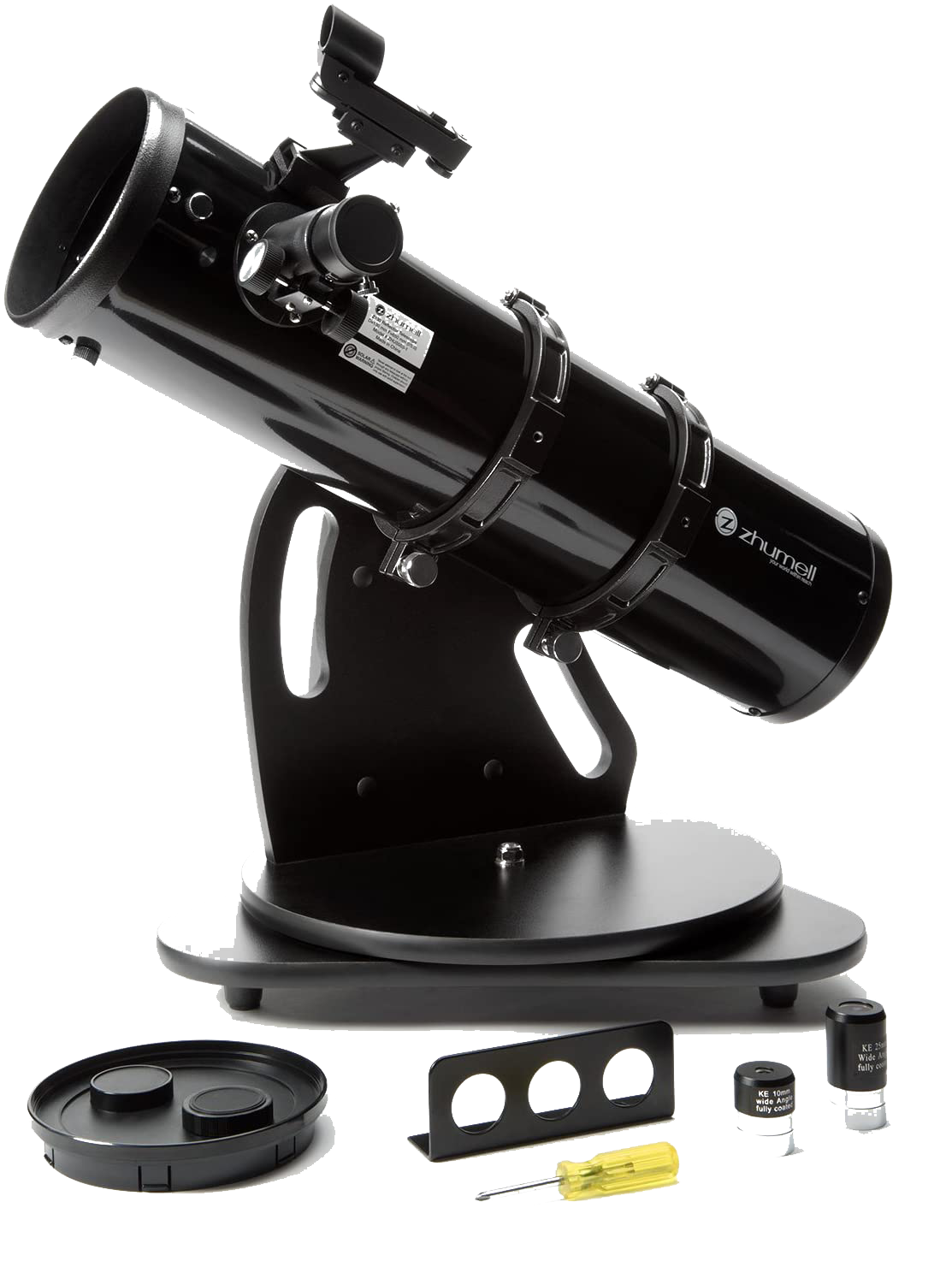 This a Zhumell brand product, a solar-powered unit, and weighs in at eighteen pounds. The power source is one lithium-ion battery included with the purchase of the product, it’s centered on an Altazimuth mount, features a standard reflector, and an industry-standard 1.25′ focuser compatible with many modern accessories. Along with the unit you also receive two twenty-five and ten-millimeter eyepieces, and a red dot finder for easily locating celestial bodies you’d like a peek at. The Zhumell Z130 Portable Reflector Telescope features a 130mm parabolic primary mirror, a high-end feature not usually found in telescopes of this size. The parabolic mirror removes visual defects like spherical aberration, providing noticeably sharper views.