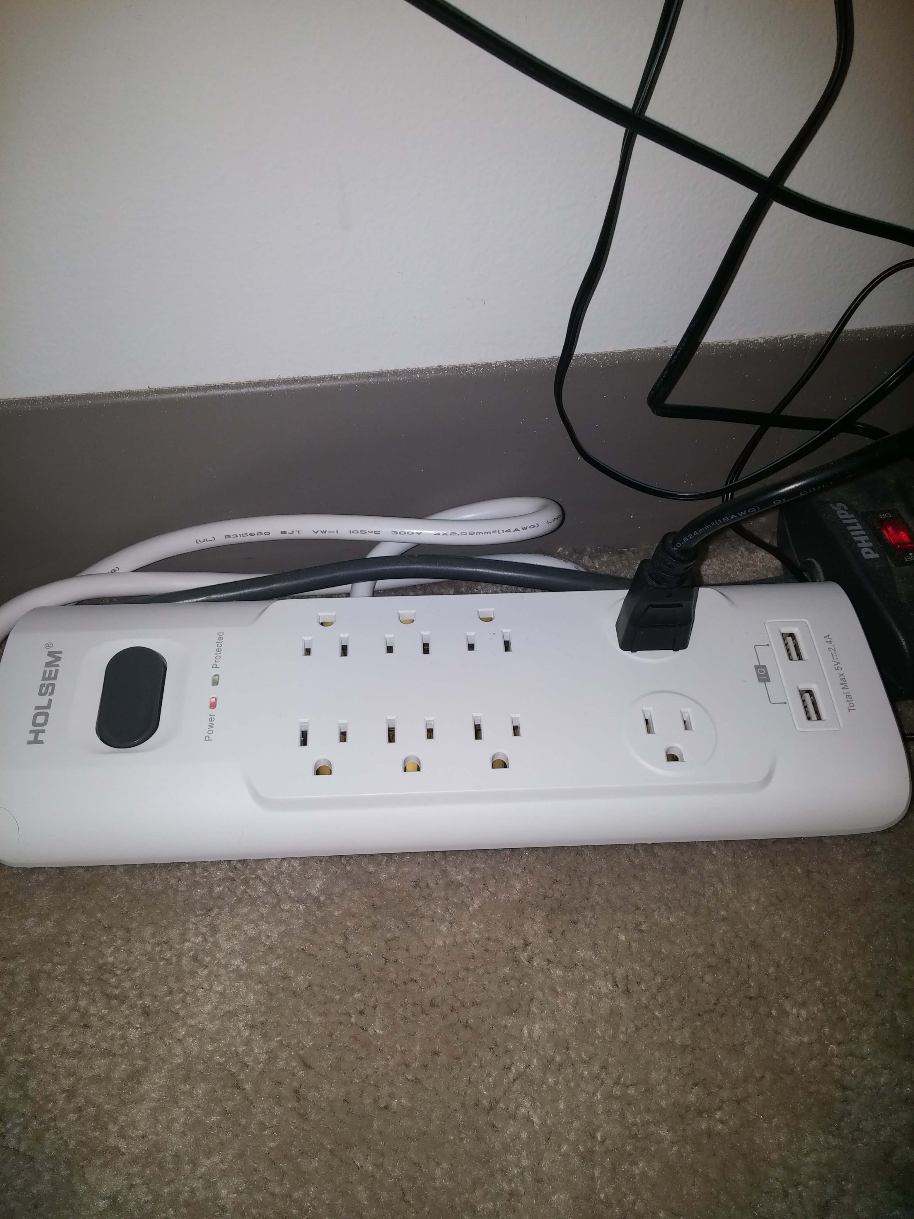 The Holsem power strip is a nice color and design. This could be used in any home and for the price you cant go wrong. You get 8 plugs plus two USB plugs. Give you any option that you could need in this day and age. Like most power bars you get the option to hang it or just lay it on the ground what ever your choice is this bar should work for you. Just remember to never over load you bar or it will get hot and fail at some point.