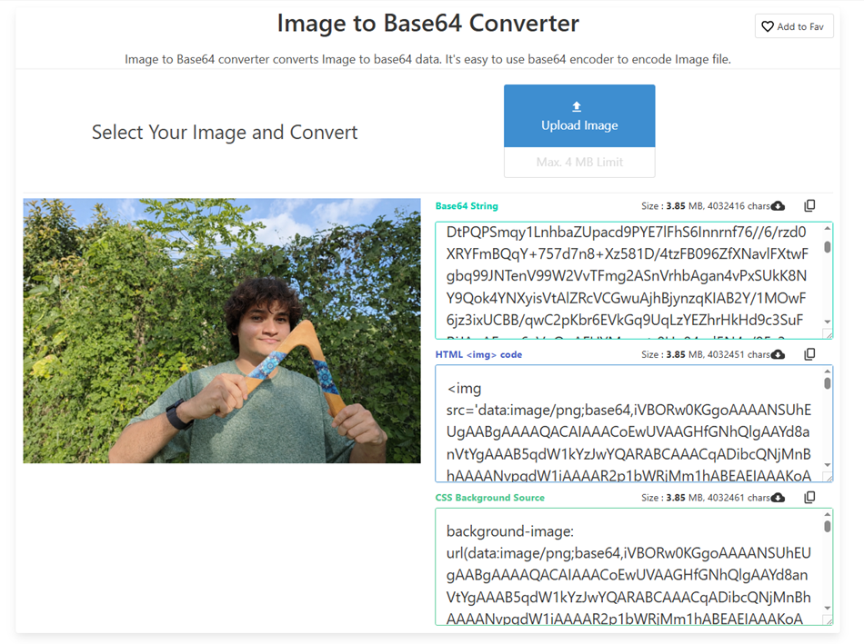 Using an image to Base64 converter, we obtained an impressive amount of more than 4 million characters, all for an image of just under 4 MB. Although it may seem like a huge number of characters, it is insignificant for a modern computer, which processes it almost instantly.