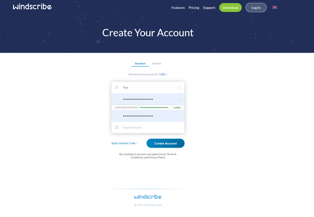 Once you open it for the first time, create a new account using the registration form that Windscribe provides for new users.