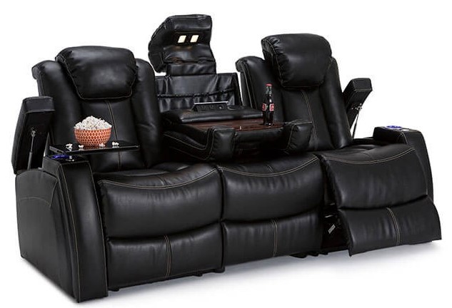 Buy new furniture such as plush couches or recliners with cup holders. Remember to furnish the room according to your taste. The Seatcraft Omega Sofa has powered headrests, trays, drink holders, storage and is the ultimate in sofa luxury for watching movies or gaming while in your mancave!