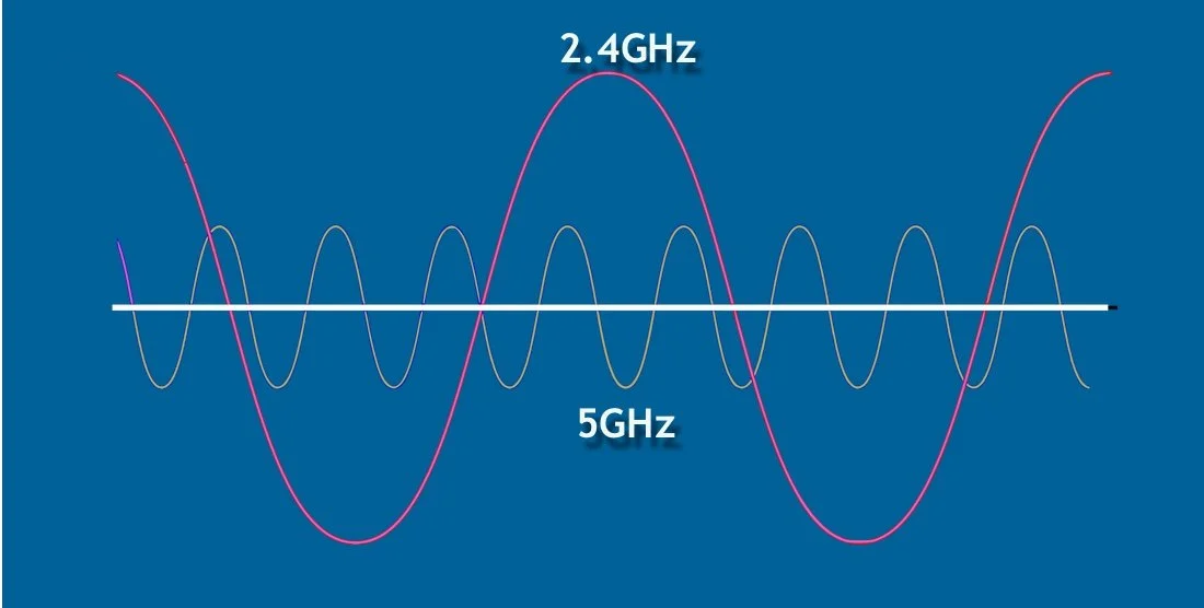 - 2.4 GHz offers stronger signal strength, allowing the internet to reach more distant areas of your home, but typically supports lower speeds. This is the same reason why security cameras and robot vacuums only work with 2.4 GHz networks.