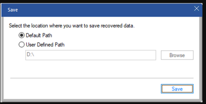 - The Save dialog box will appear. Choose either the Default Path (selected by the software) or the User Defined Path to save the data.