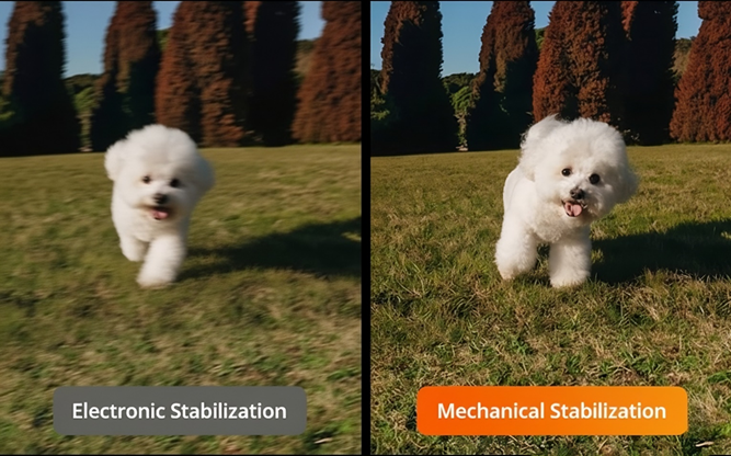 On top of that, you also benefit from stable video and images thanks to its 3-axis stabilization and fast autofocus. Mechanical stabilization is far superior to electronic stabilization, which often introduces errors that can ruin your recordings.