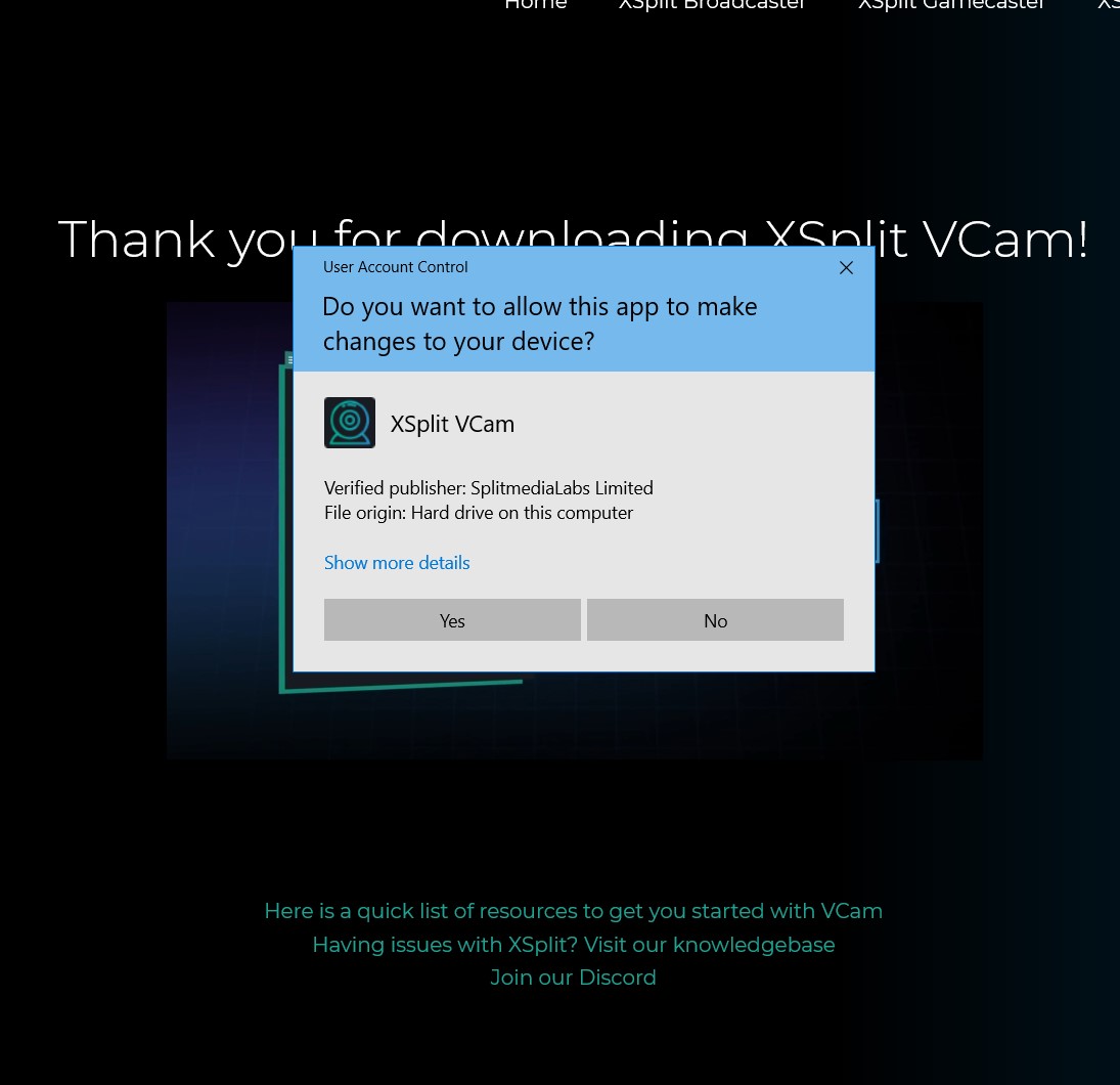 Installation of XSplit VCam