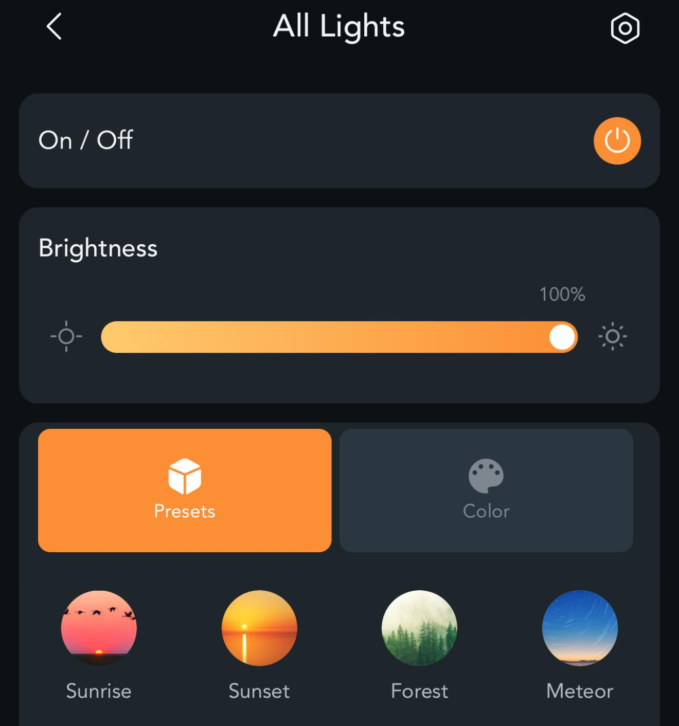 After your group is created your entire group shows up along with your individual lights, with your group all the lights in your group immediately sync to the same color choices and options you select.