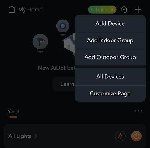 After you pair your lights or even before you can click on the + sign and where you would add a device you select Add Outdoor Group.
