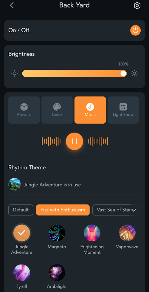 With Music Syncing, you basically have your phone’s microphone (you have to allow AiDot access to your microphone) to pick up music and the lights will sync to the music based on the pattern you choose.