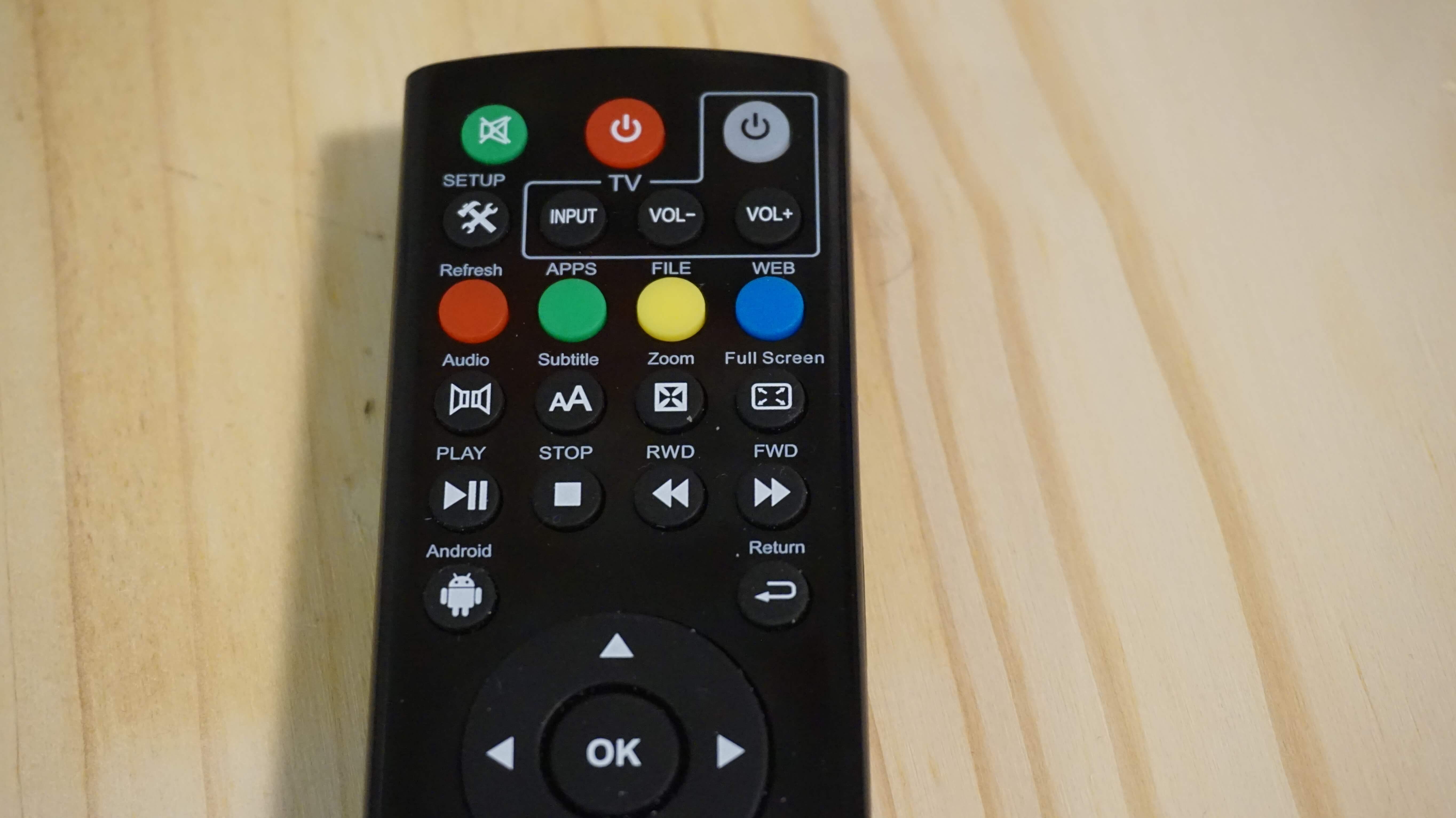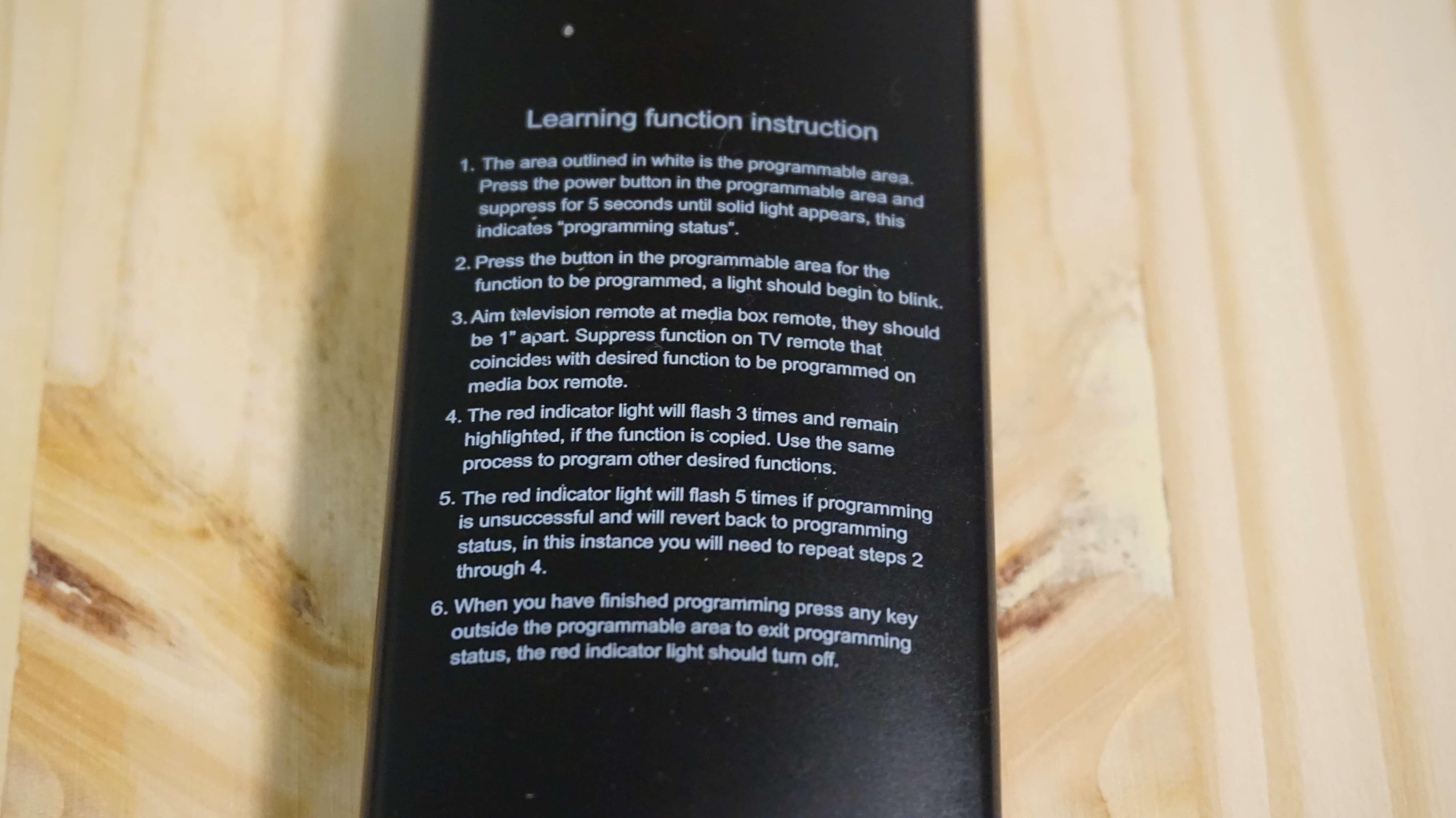 The Magg Tv Media Player comes with a Remote which is a fantastic thing and makes life easier. On this remote, you have many buttons and options to program your own stuff to it. The remote has most normal buttons like number pad, volume, setup/tools, info, and mute. Some of the buttons that are not common on most remote are Web, Android, File, App, and Refresh buttons. You can program this remote to work your TV or other remote controlled devices. On the back of the remote is the process to do that. I won’t go too far in depth with that but pretty much you press the power button in the TV section and aim both remote controls together until a light flashes. Then you click the button you want to activate. Let me show you the remote up close. The remote will require two triple-A batteries that are not included.