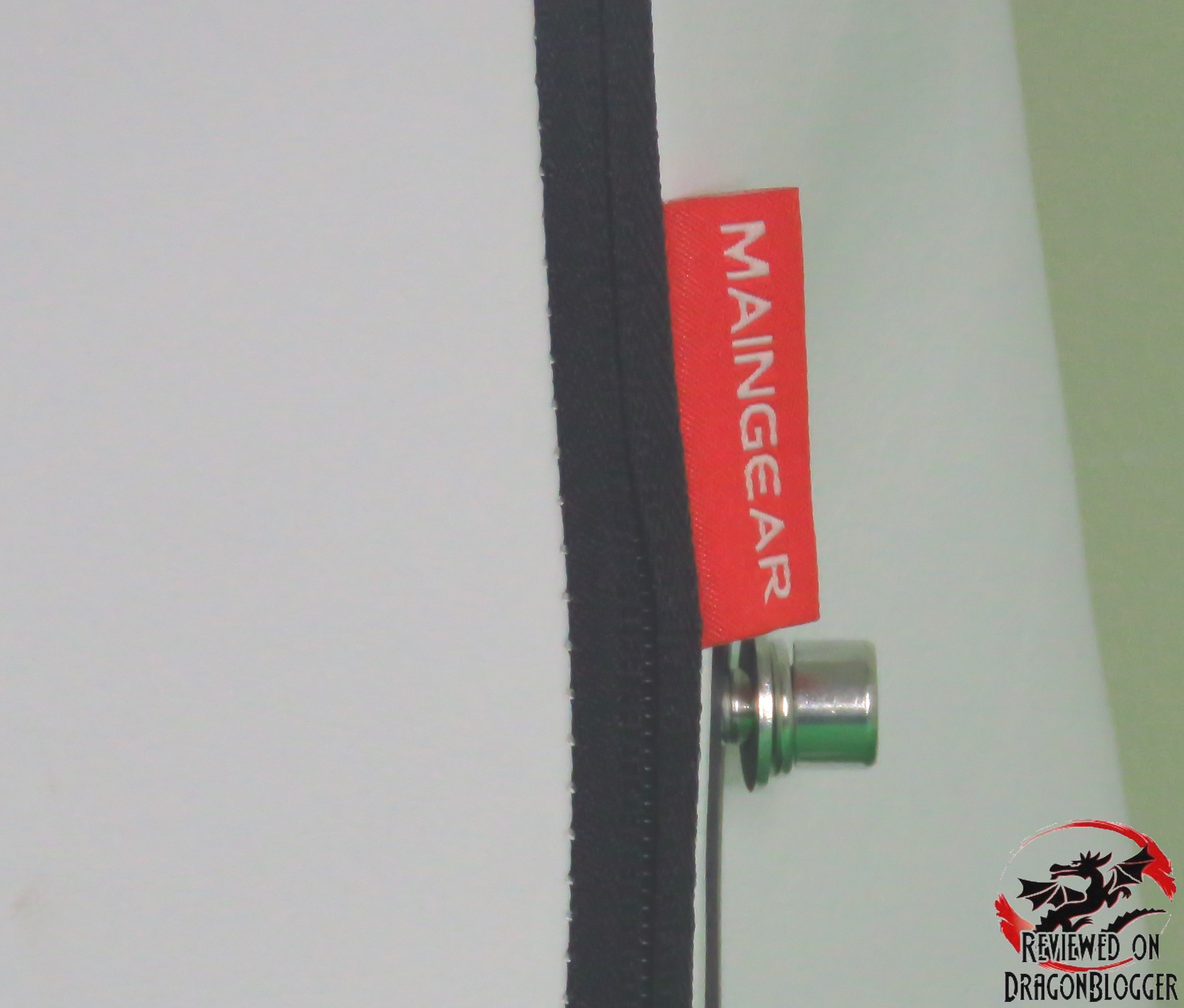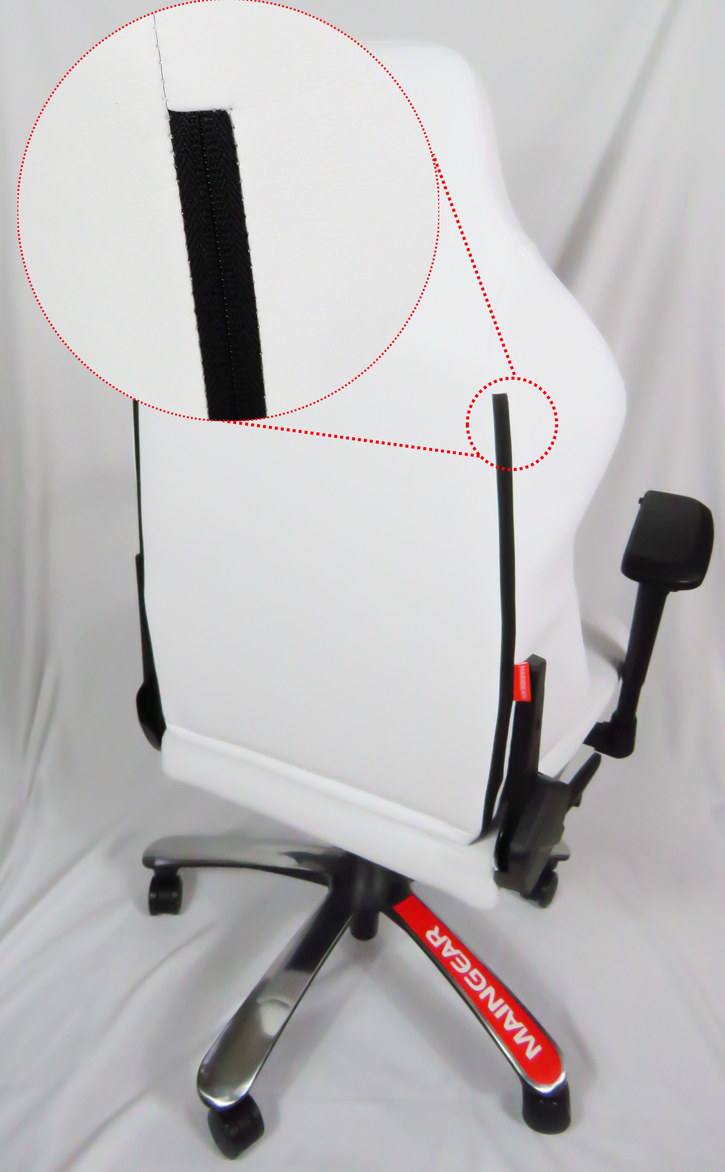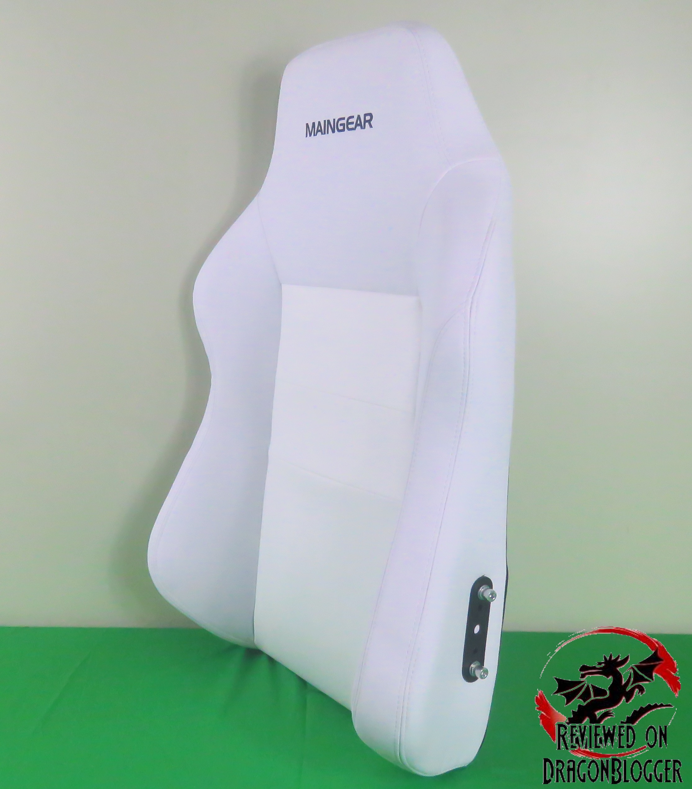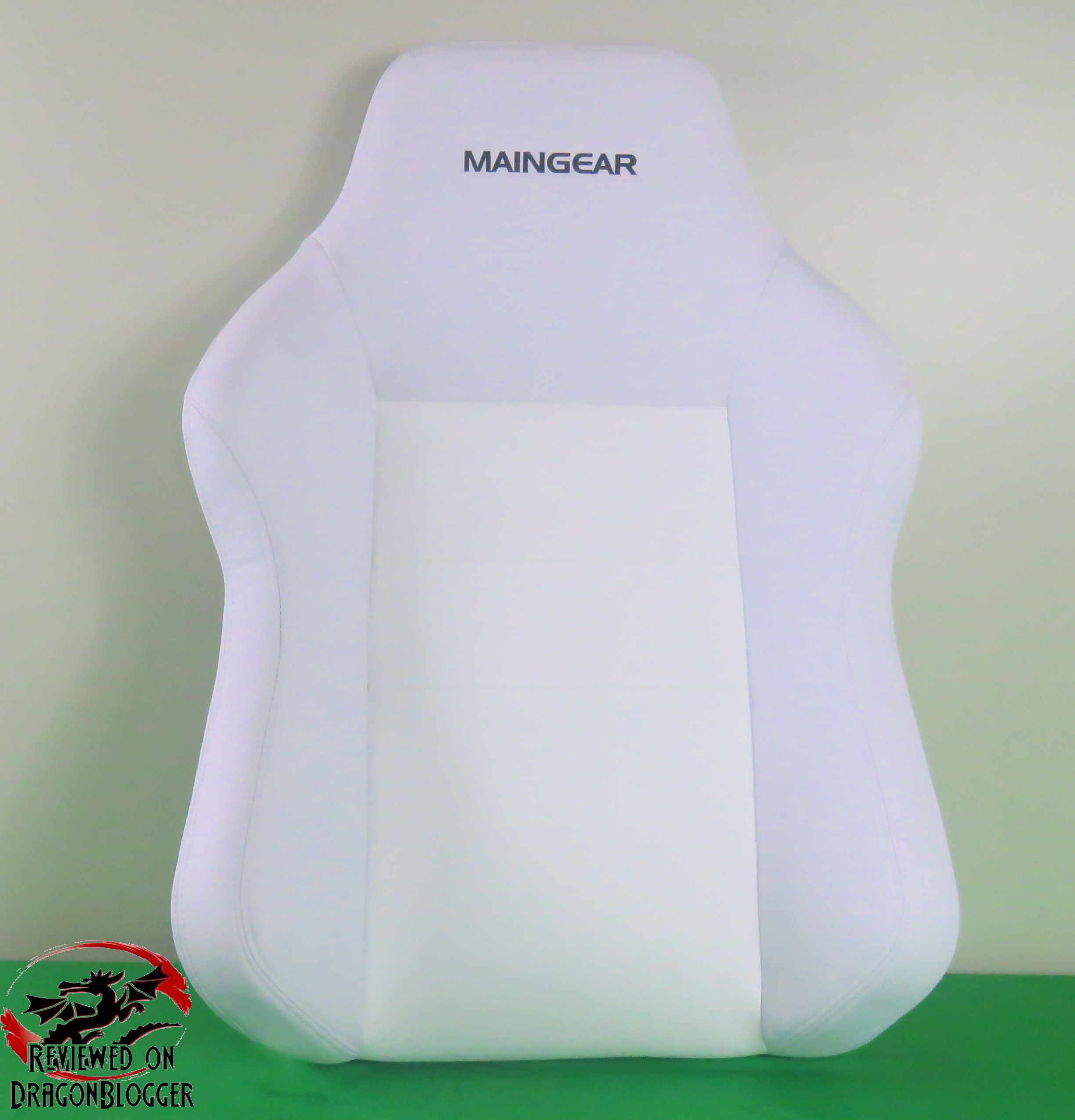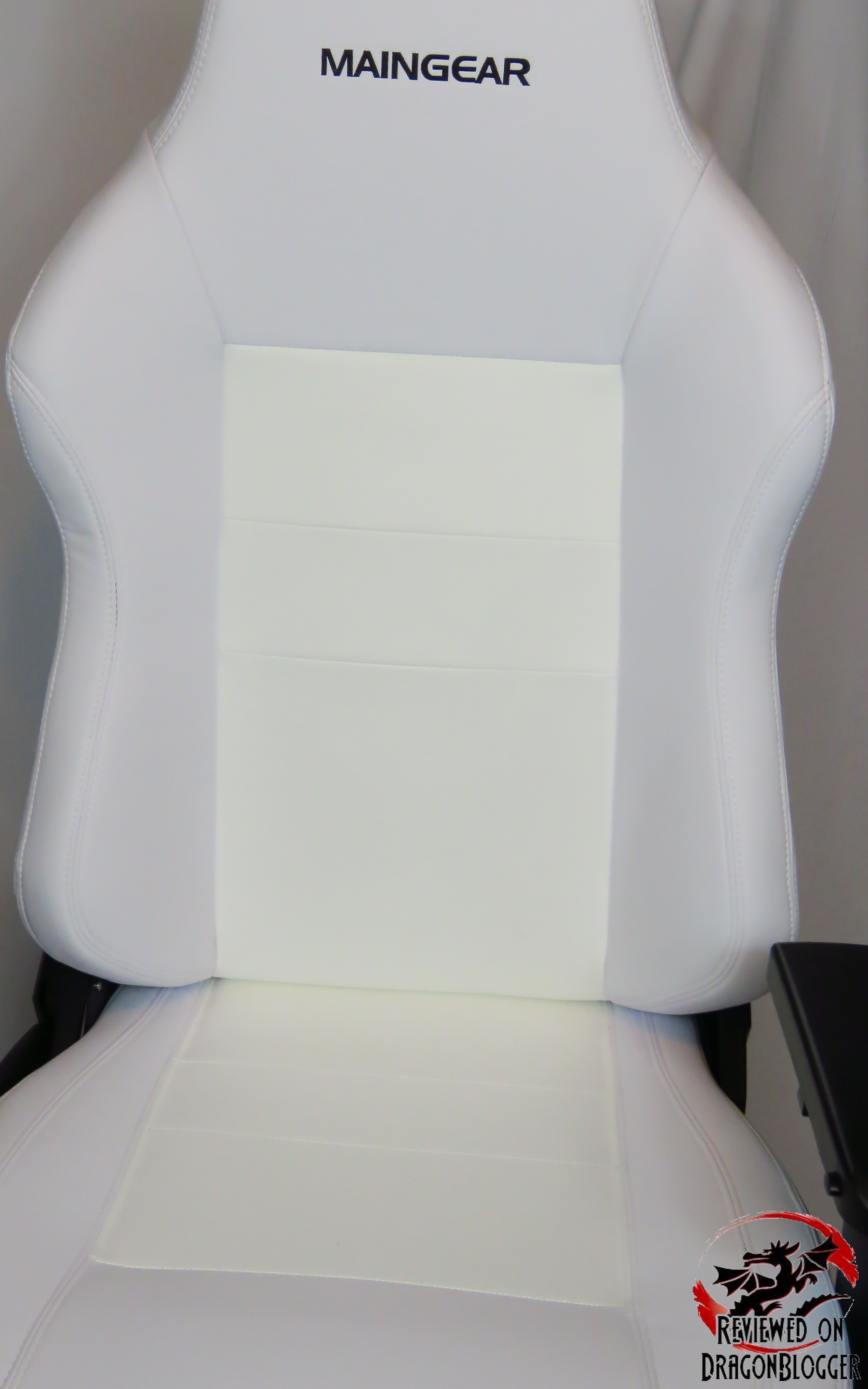 Here is a straight shot of the backrest. Along the headrest portion, you can see the Maingear logo embroidering.