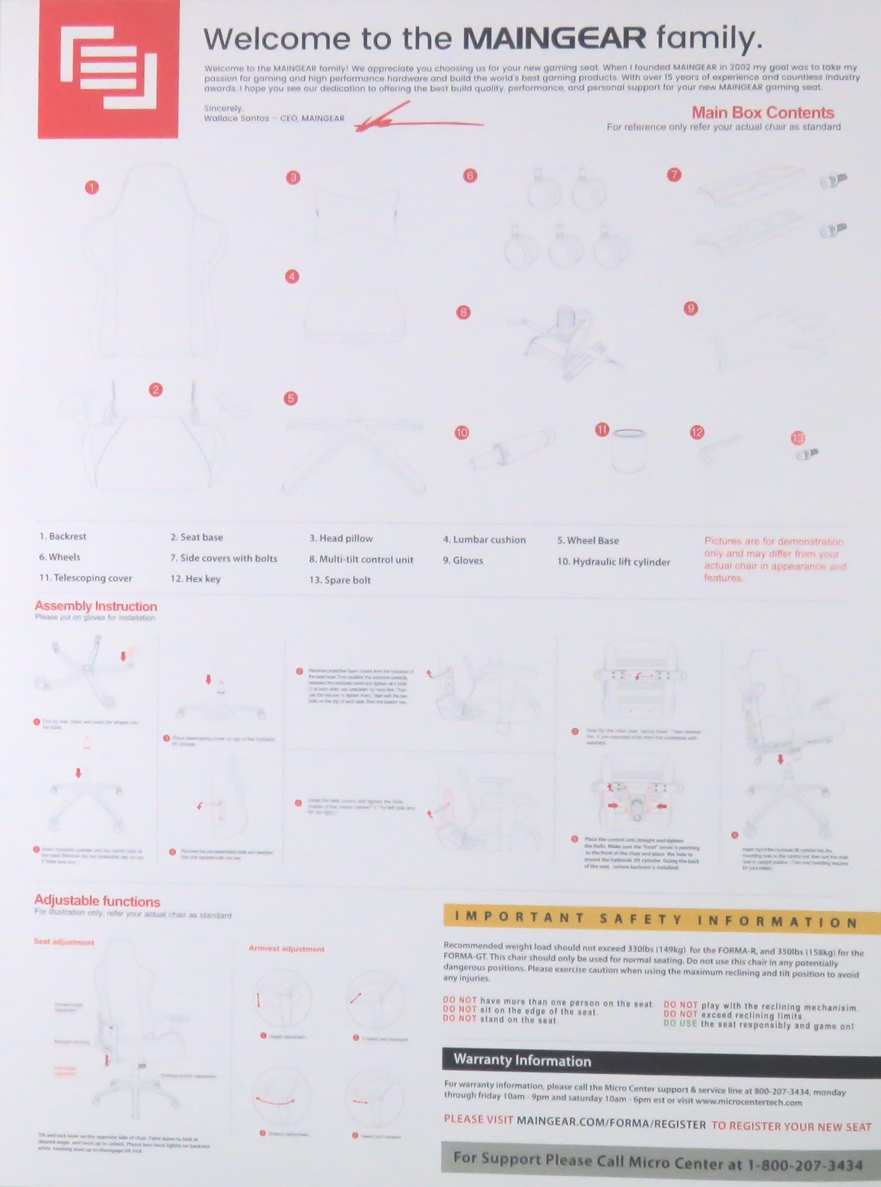 So you can get the Maingear Forma R at www.maingear.com, a local Micro Center (or online) and also at Amazon, so they made it easy for you. The warranty also allows you to take it to a Micro Center and return it there, if they have it in stock and if they don’t you can have them ship the chair to your home or pick it up once it arrives. The same goes for the accessories, including the pillows, VERY convenient. It might be easier to call them first of course.