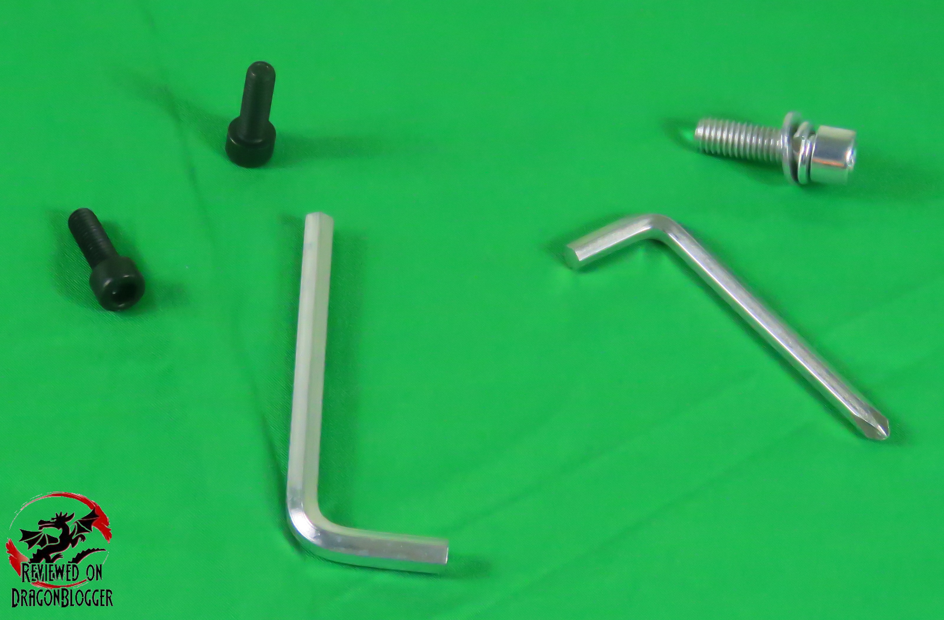 Here are the tools included, 2 hex keys, one of which has a Philips head at the end, each are different sizes for the different bolts used here. Also included are 2 bolts for the side covers and a spare bolt in case you lose one of the bolts on the underside of the chair.
