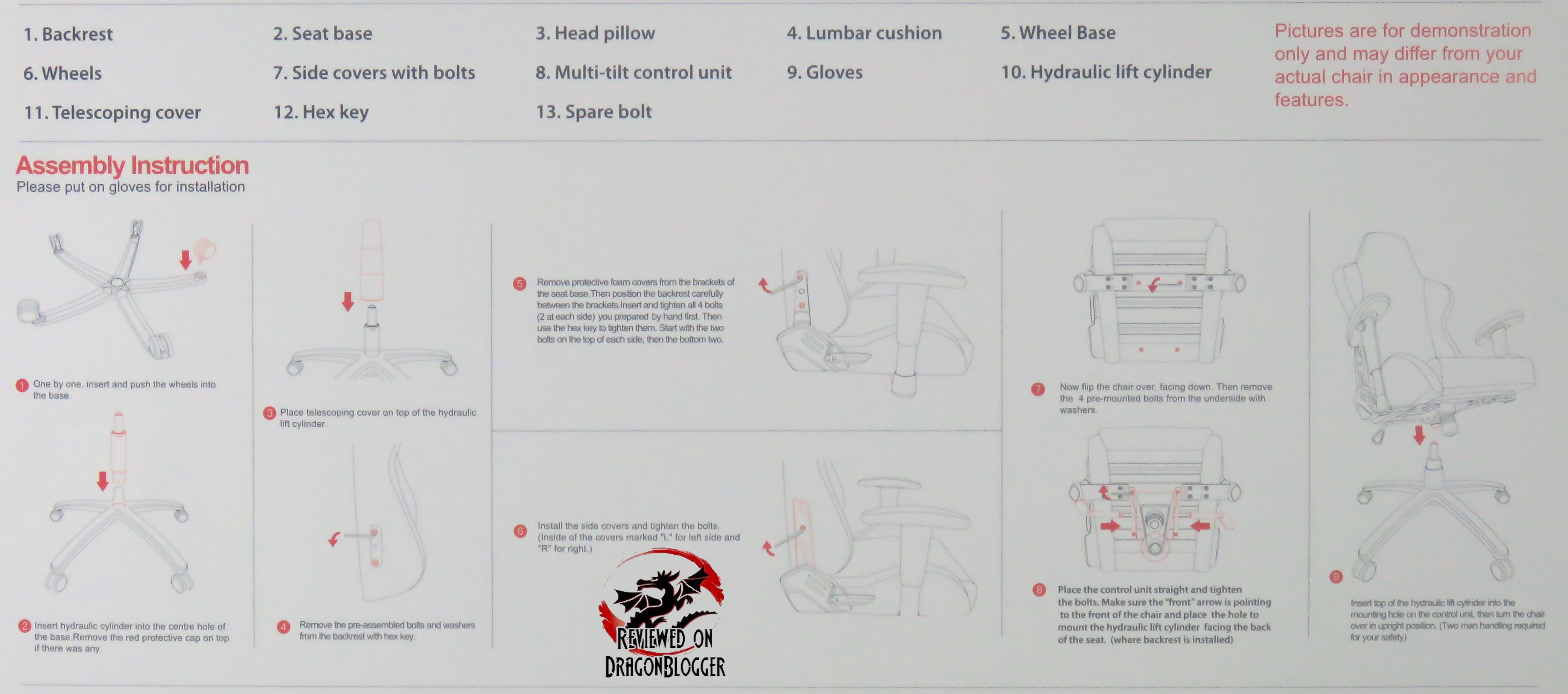 While a small touch, this was the accessories box that contained all of the above listed pieces and the multi tilt control unit inside of the large box itself. This accessories box, unlike all other chairs I have reviewed that came in plain brown boxes is red with the Maingear logo and clearly says accessories. It is a small, very small touch but it is worth mentioning since it’s the small things that make you take note to the attention in detail.