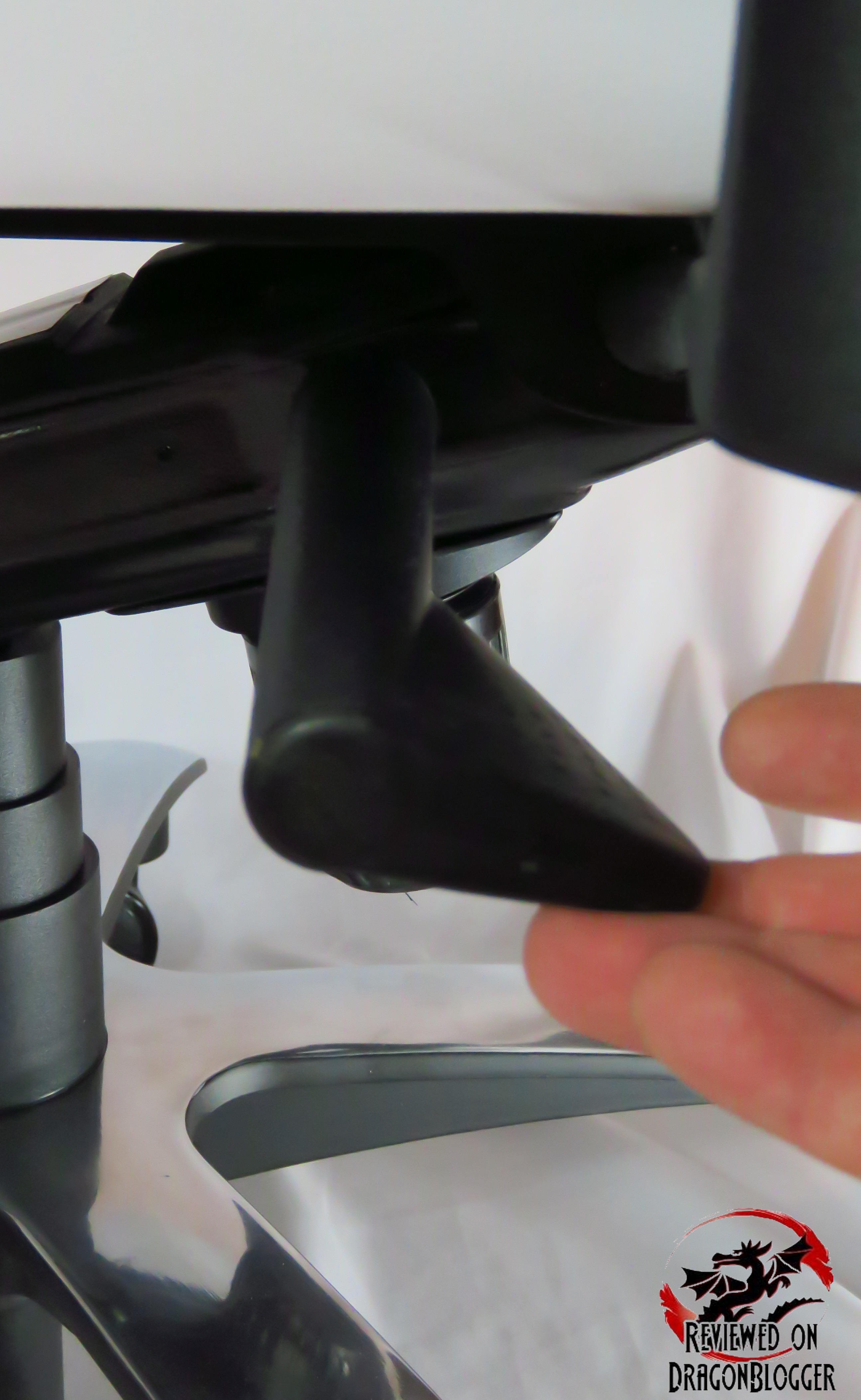 The lever on the left side allows you to adjust the tilt of the seat. Twisting the level upwards loosens the tilt, then you can find your tilt comfort lever and then twist it downwards to lock it in place. If you leave the lever loose, you are free to rock back and forward. This has been the very first gaming chair I have used that the rocking actually works. Remember, if the rocking is too loose, you can adjust it by tightening the knob I showed you earlier.