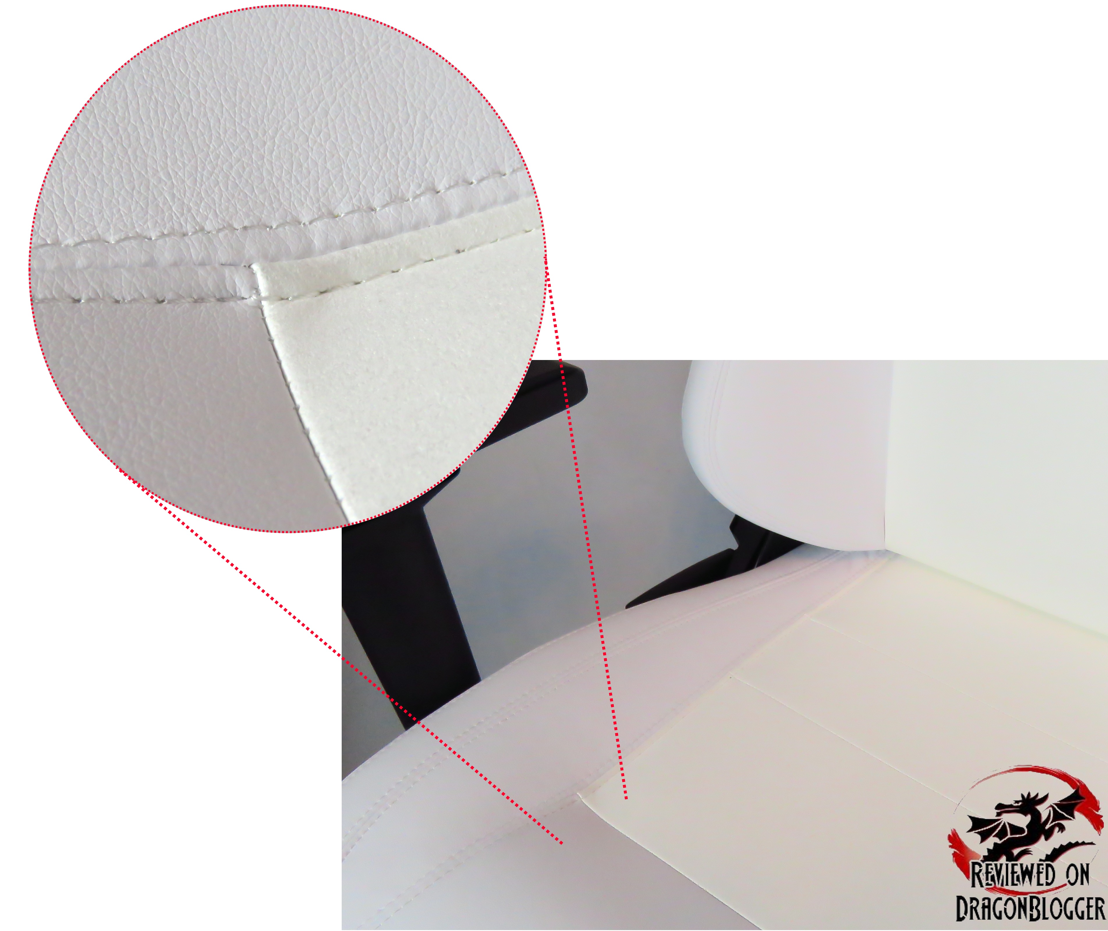 A close up view shows you the texture of the seat and how fine and detailed the stitching is.