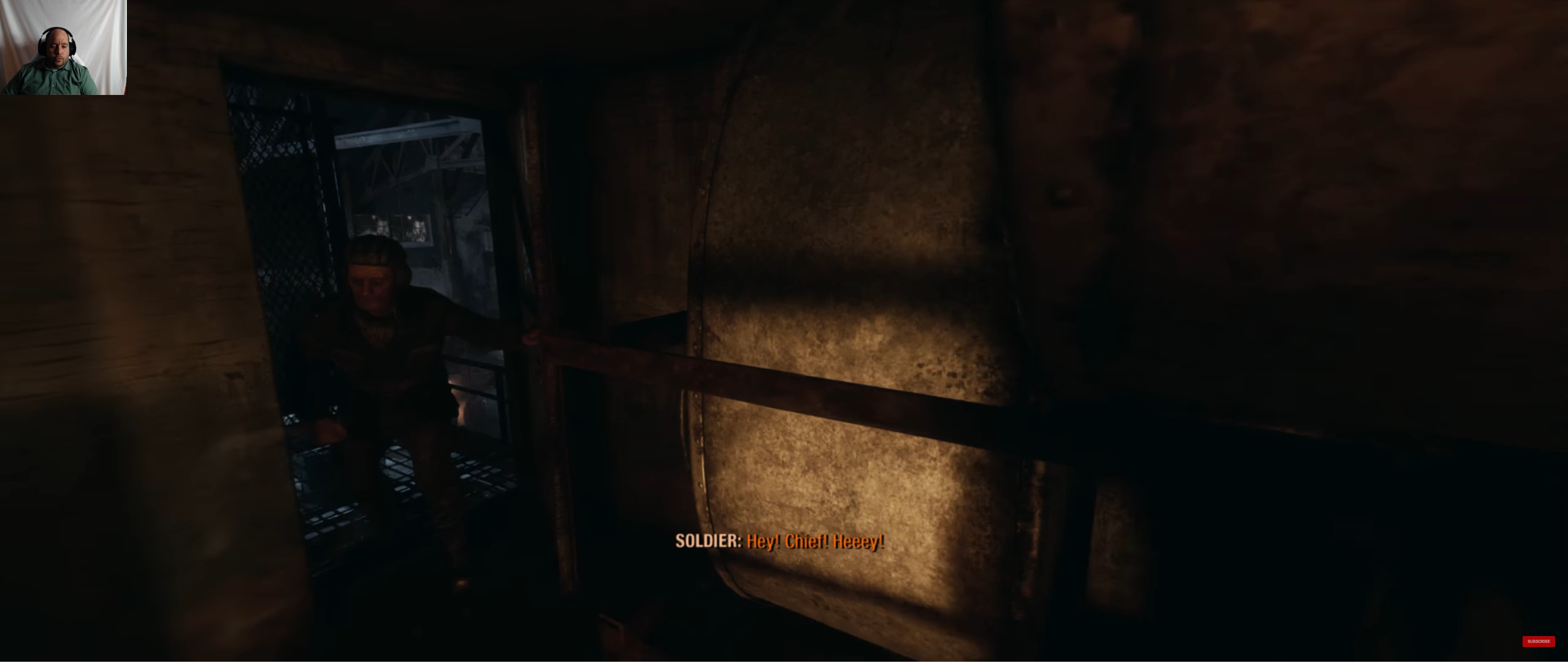 Eeke, climbing up the ladder and making a left, I see 2 soldiers seemingly looking right at me, but I slowly backed away, they didn’t see me.  After turning around, making another left then a right, I come across an opening but also an argument.