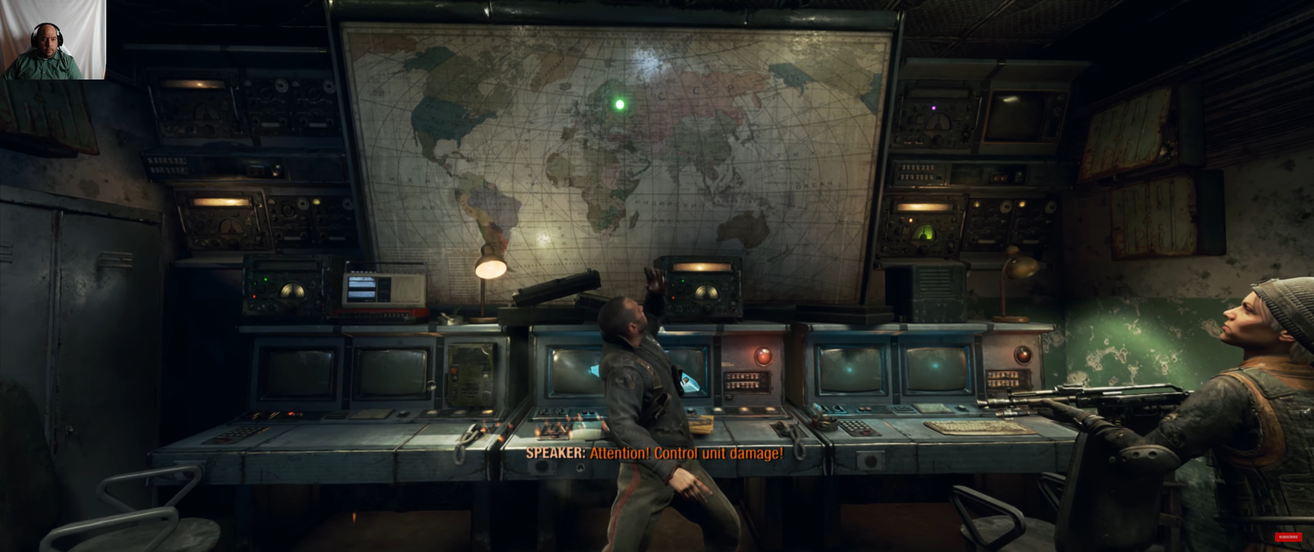 Anna quickly gets back up and pushes the commander aside when we hear the speaker mention that the control unit has been damaged.  The equipment is the radio jammer that stops all of Russia from hearing each other, this is what stopped us from knowing there was other people out there.