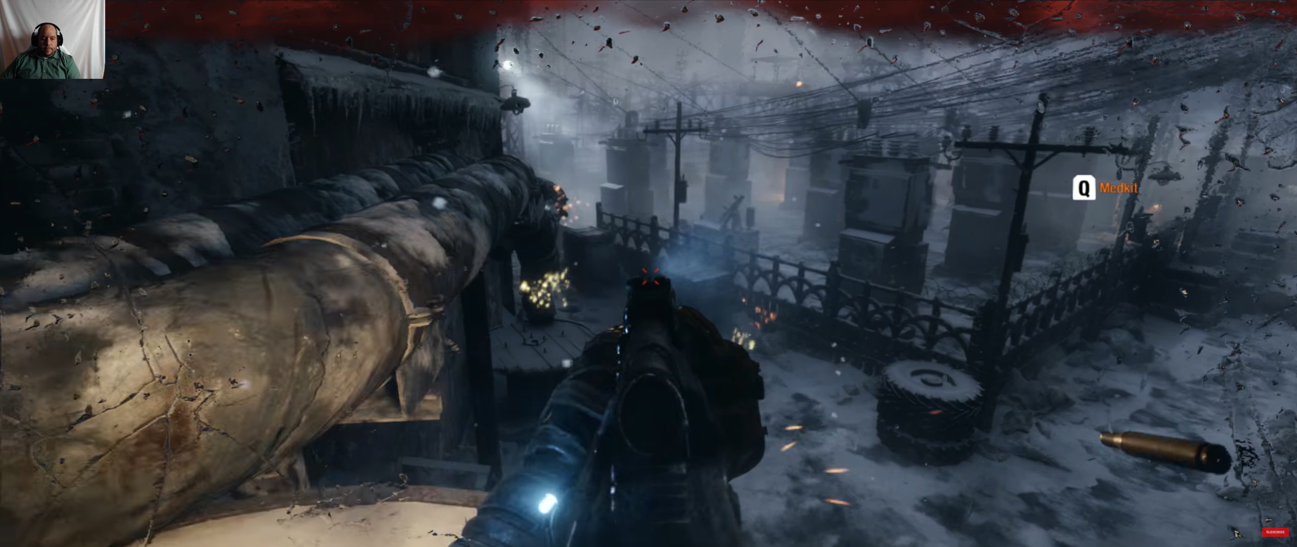 After coming out of the buildings, I make my way up the AC ducts on the left and walk to find another soldier waiting behind the boxes below, I take him out and a few other passers by.