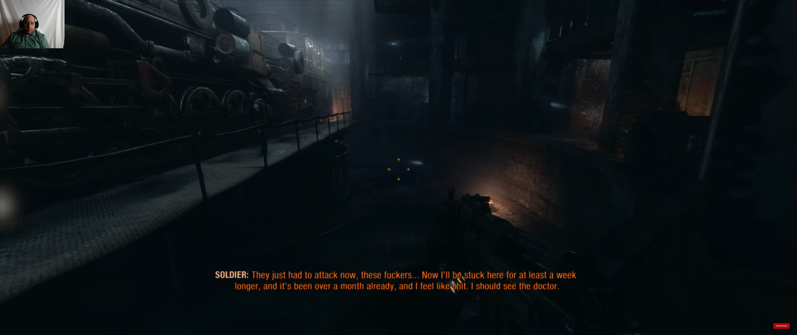 After walking through the short entrance, and then another door, we find the engine and the beginning of a new journey.  We find out now that they got Yermak.  They are trying to figure out why they found Yermak out in the Train station.