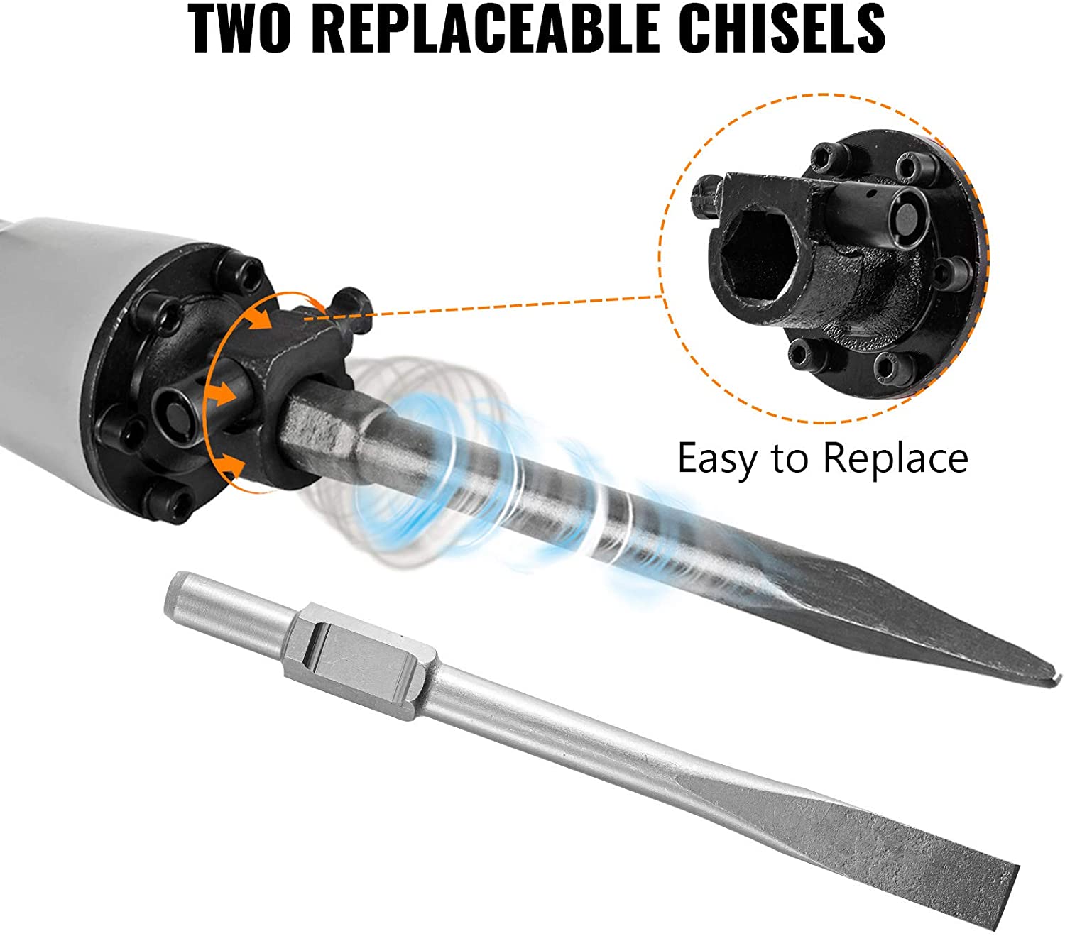 The Mophorn jack hammer comes with fantastic handling which provides delightful experience in controlling. The slip-proof rubber enhances the friction for user’s handling. In addition to that, the rubber grip also absorbs all the vibration during the job. It helps users to get full control of the jack hammer while operating. As a result, it can minimize the risk of getting injured and increase the productivity at the same time. Have I mentioned that this handle also comes with a 360 degree rotary ? Sometimes, users might encounter difficulties in performing their jobs with different positions. Fortunately, with a 360 degree rotary handle, this is not a problem. It can cater different positions under varies circumstances. The oil port is another example of how thoughtful this design is. It helps user easily inject oil precisely.