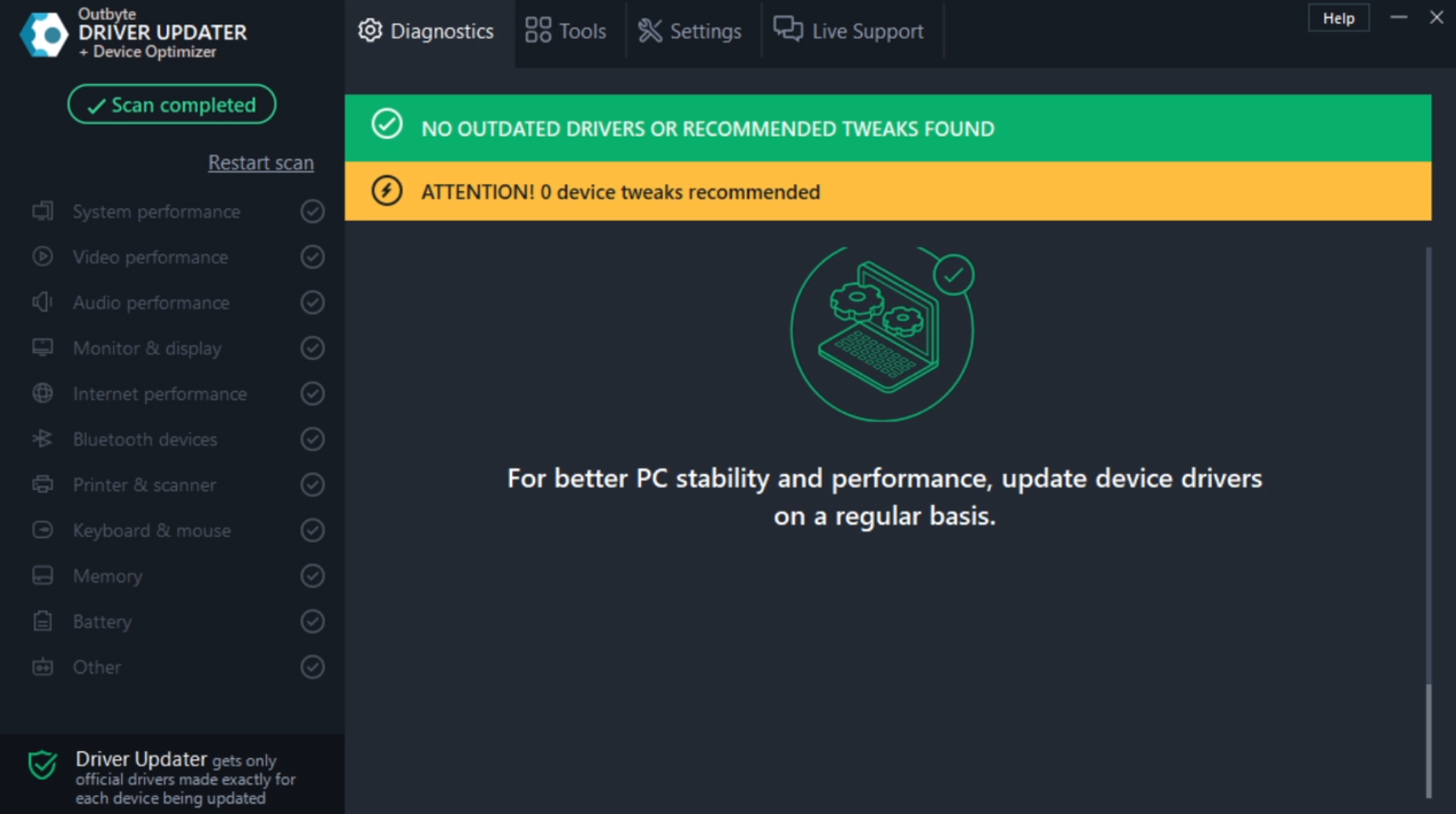 The user interface was really easy to navigate and you can tell that the developers do want their clients to have a good experience and are not troubled when a user needs direct assistance. I really enjoyed using Outbyte Driver for the first time and I look forward to my automated scheduled scans to keep my PC performing at its best!