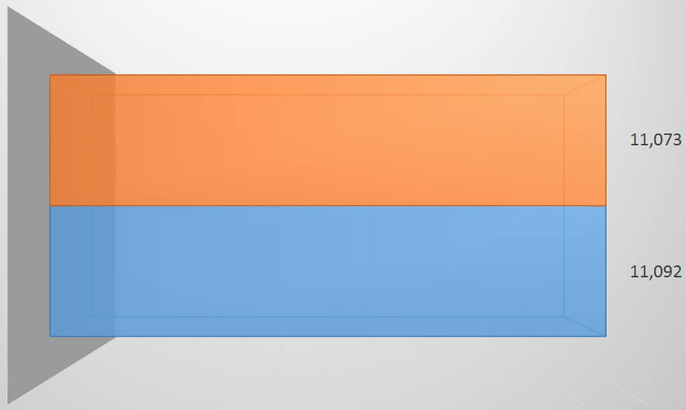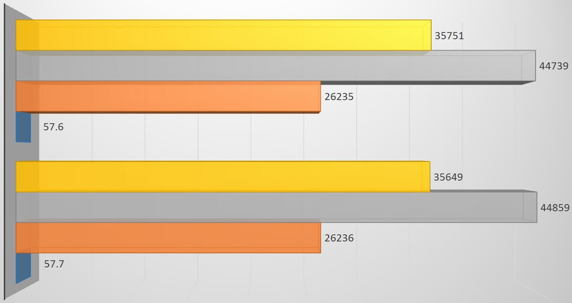 HyperX here comes up ahead, 7Zip relies more on Memory frequency and settings than 3DMark and PCMark. HyperX comes up 174MIPS higher, a .512% difference in performance.