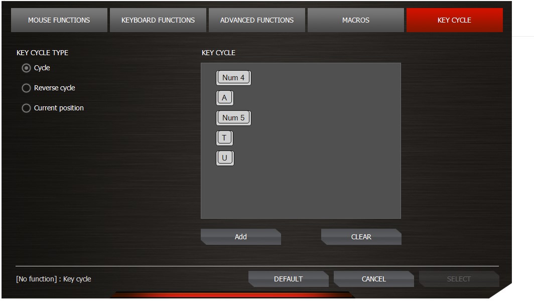 The “Keyboard Functions” section, allows you to set a desired keyboard key for that button, a single key. A very odd function, but its there if you like it.
