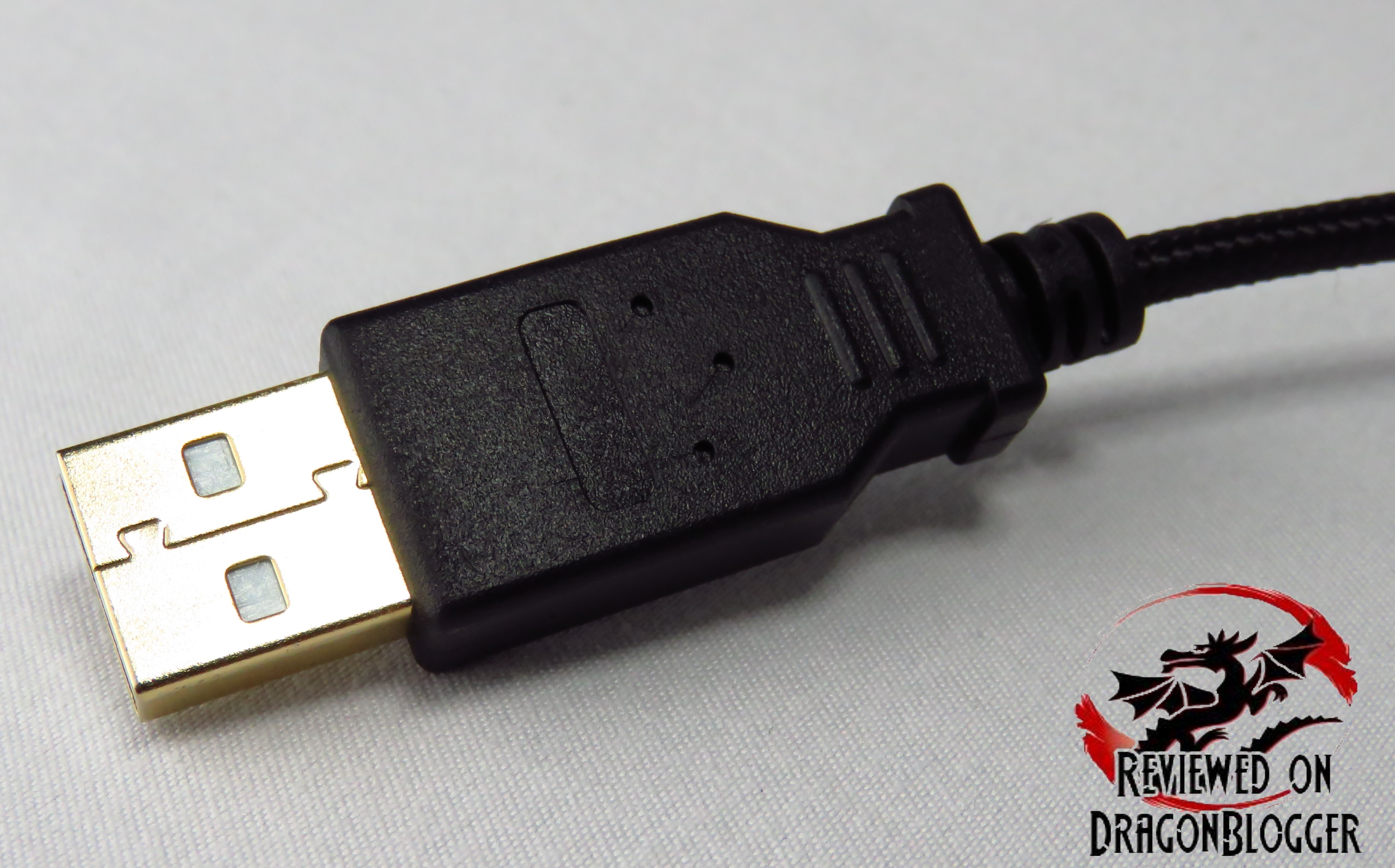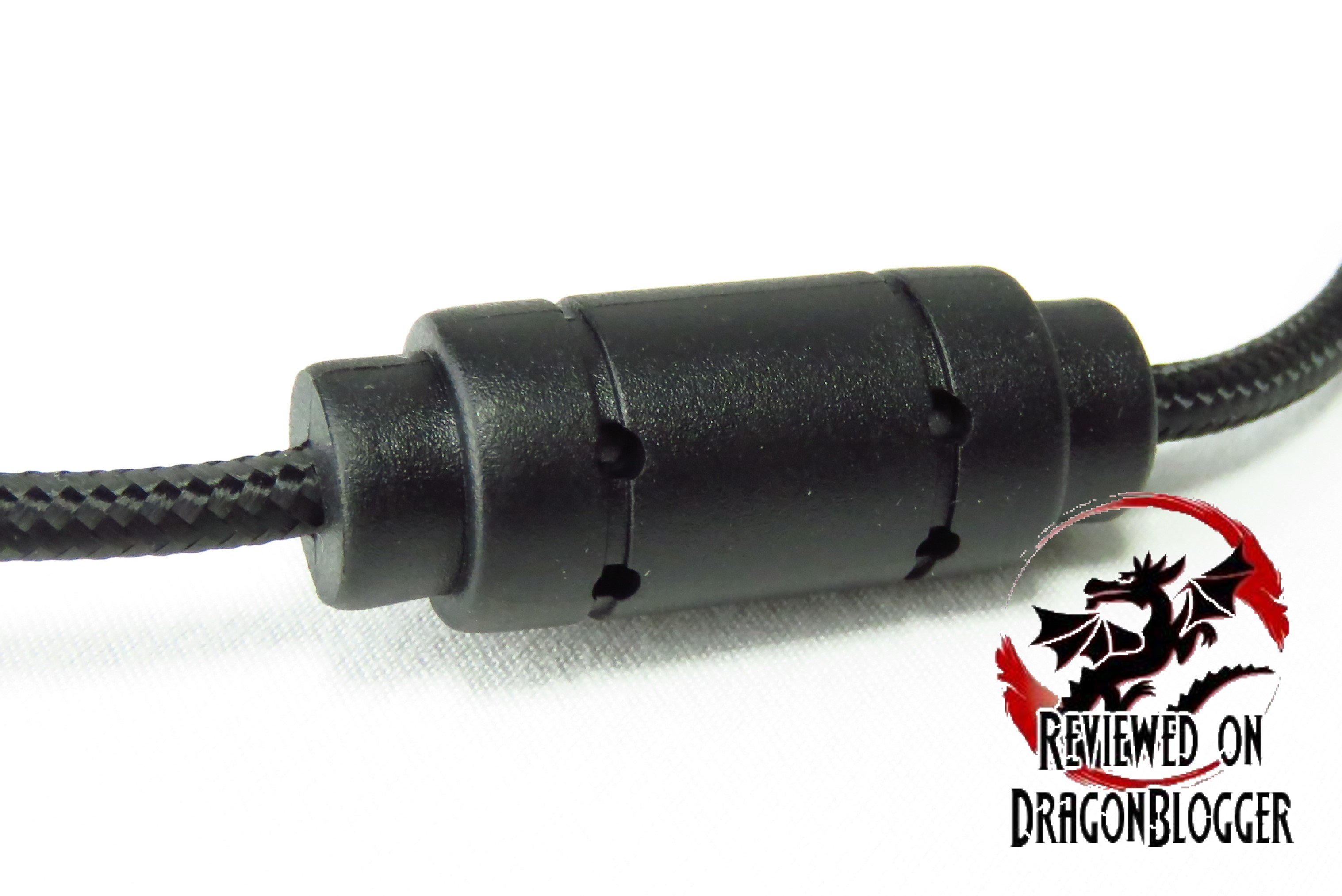 We find a tightly braided cable and in between that a ferrite core to help keep your mouse communication from getting interference, keep that 1000hz polling rate fresh. Not uncommon, but still worth mentioning. The cable is 1.8 meters long, or 5.9 feet.
