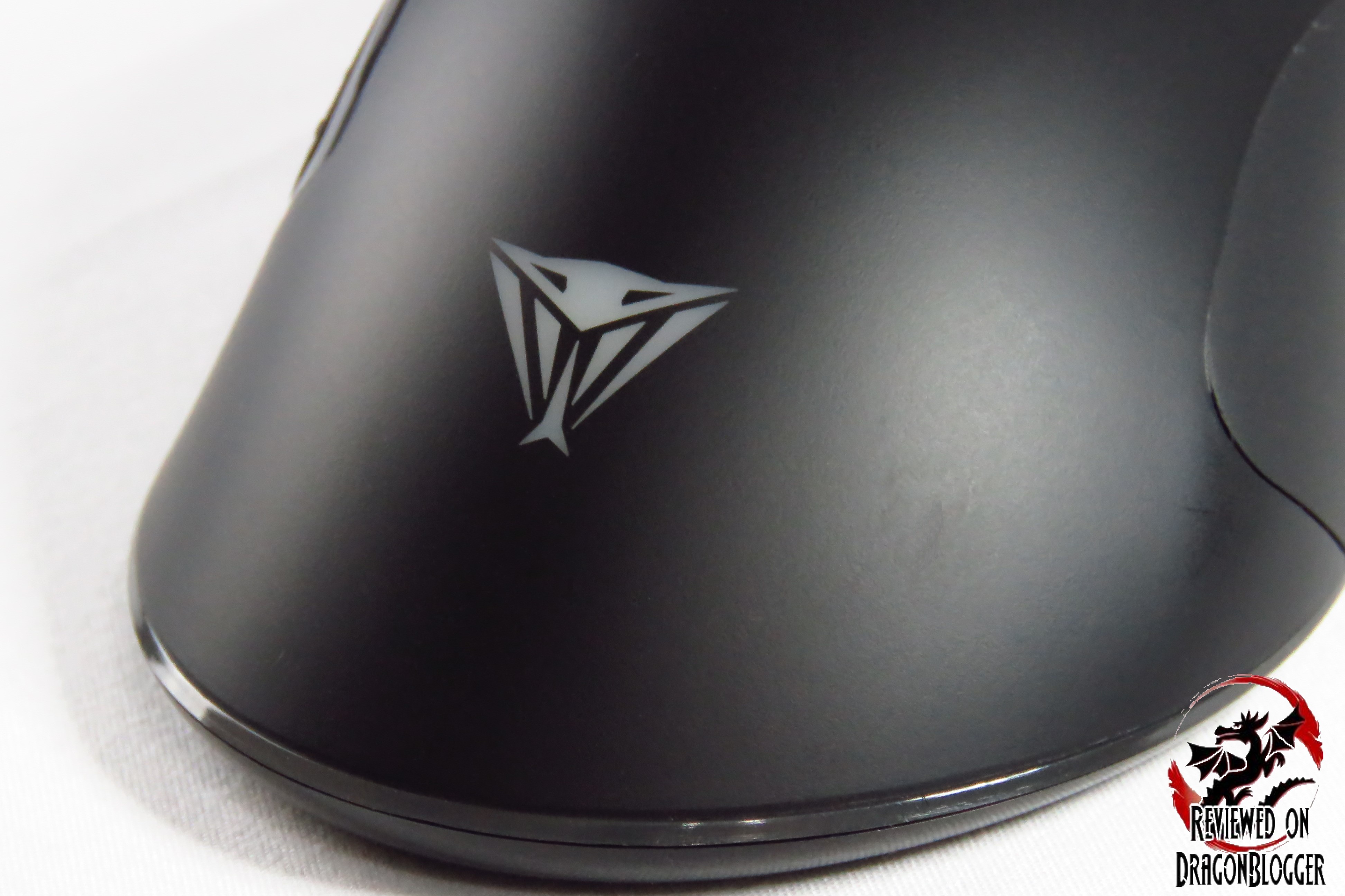 Below that, we see what looks like 2 buttons, but they are indicator lights. Next to the lights, we can see the side rubber grip pads to help keep the Patriot Viper V551 Optical RGB Gaming Mouse comfy in your hand after a few hours of gaming.