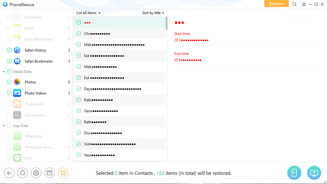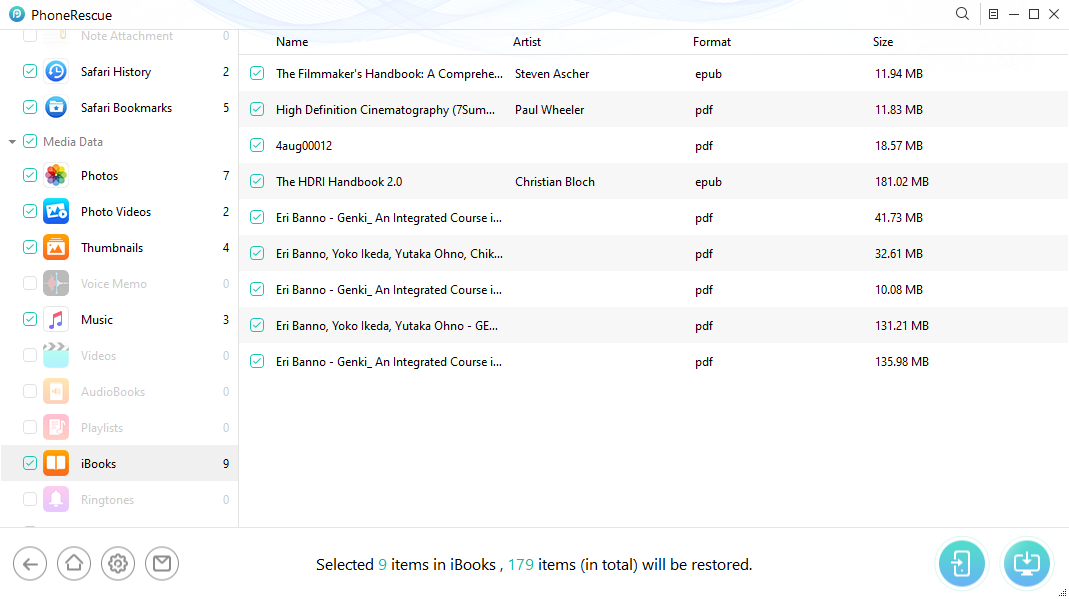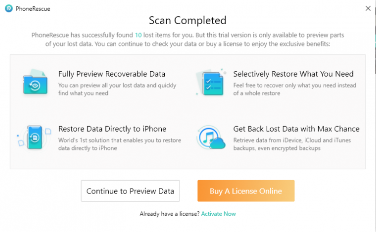 The free version of PhoneRescue only lets you preview the recoverable files. To recover them, you will have to purchase the full version.