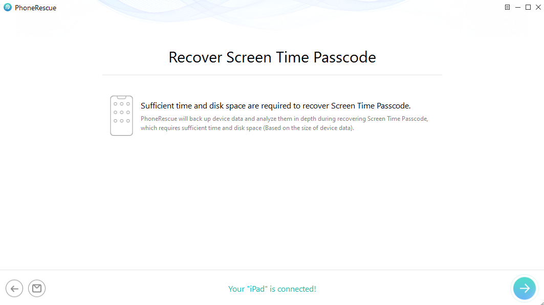 Screen Time allows the user to set a timer for your apps to not spend too much time. But on the occasion that you want to disable it and don’t remember the password, you can remove it easily with PhoneRescue. The software requires you to make a backup of your iOS device to perform the recovery. Once the backup is finished, PhoneRescue will start analyzing the data and recover the password.
