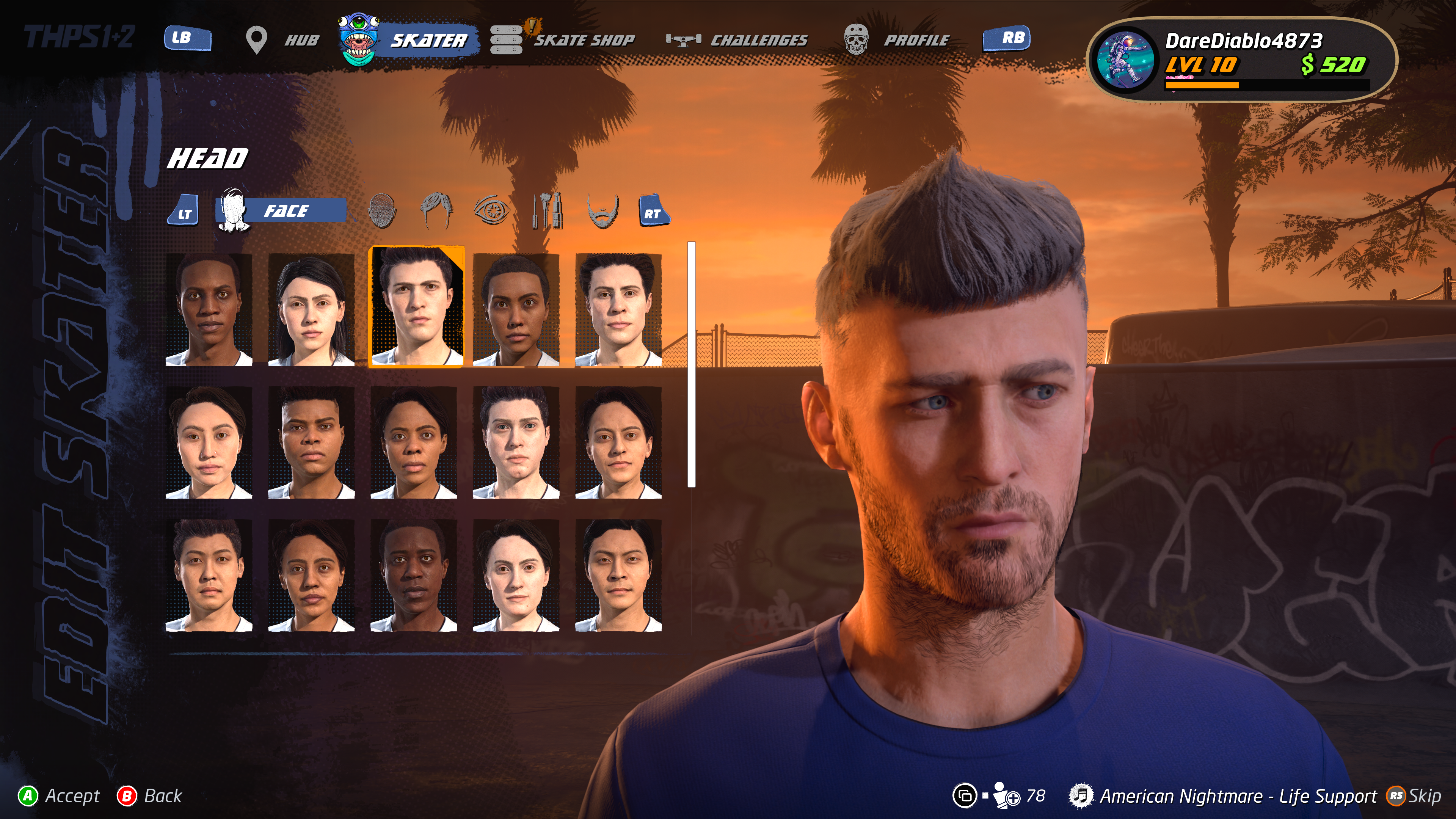 Along with being able to play as one of 21 pro skaters you are also able to create your own skater with a plethora of customization options.