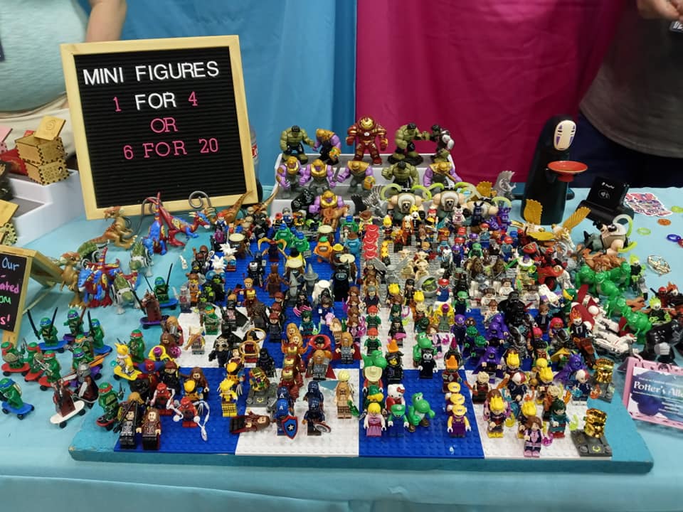 Bottom: A display full of Lego minifigs available for purchase at one of the many booths at PopCon Indy.