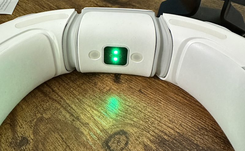 Initial unboxing and the device has a very futuristic appearance for sure, I felt like it was something out of the movie TRON. This neck air conditioner comes with a smart app called Metaura and you pair it with your phone over Bluetooth.