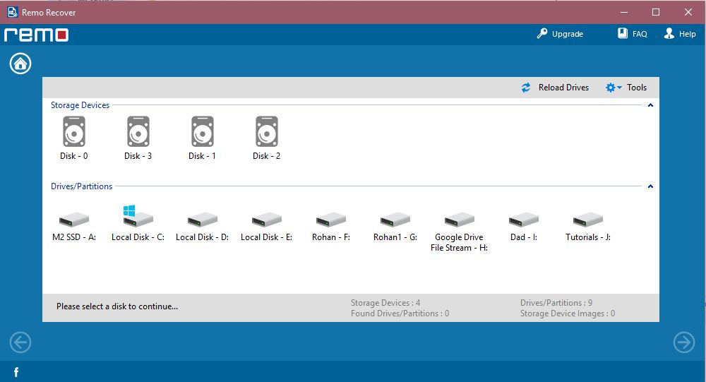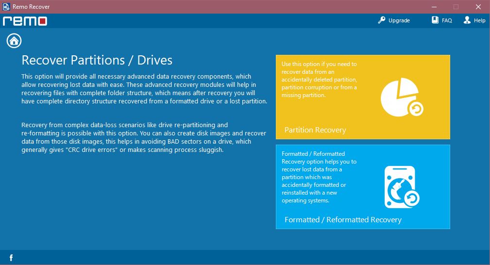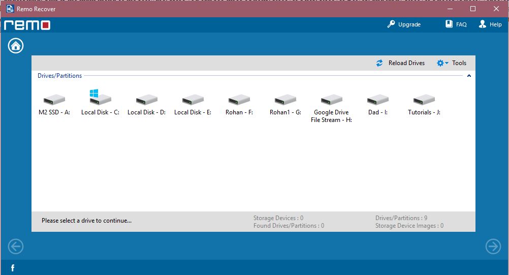 So the final option is the Recover Drives. You will need the Pro Edition of the Remo Recover software to use this function. There are two options to choose from here. Partition Recovery and Formatted/Reformatted Recovery. The first one allows you to recover data from an accidentally deleted partition, or a partition corruption, or from a completely missing partition. The second option helps you to recover data from a completely formatted drive, may it be accidental or due to reinstalling a new operating system. For this testing, I did not have any recently formatted drive so I was unable to test this. But this is a walkthrough on how you can recover data from a deleted partition or from a recently formatted drive.