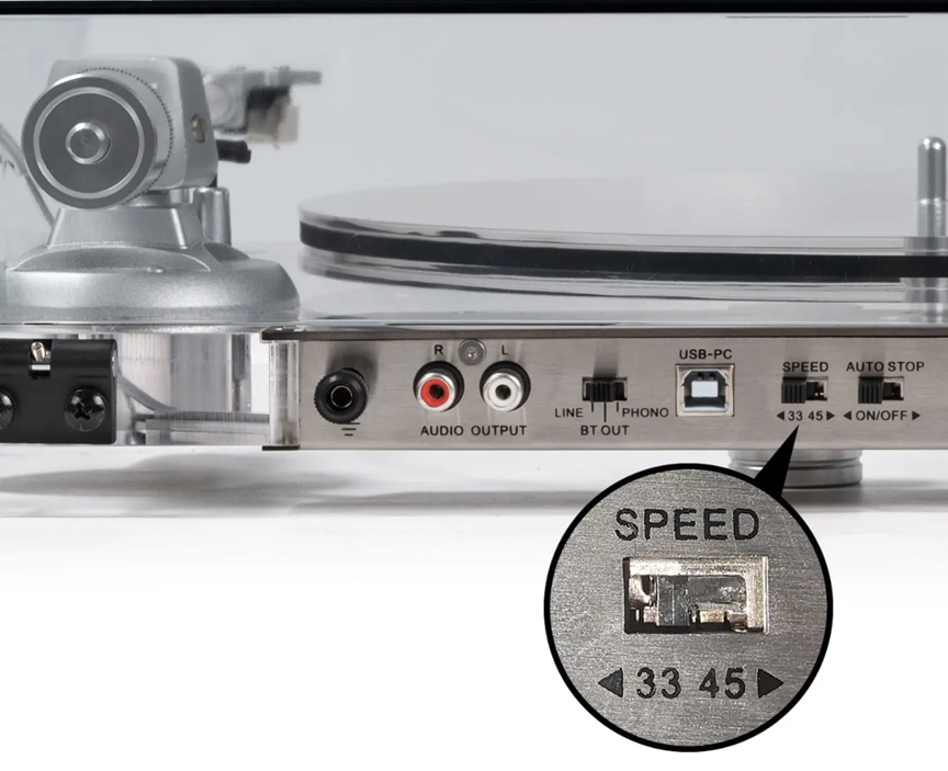 The Retrolife ICE1 can not only play music on its own, but if you want you can also get a louder sound if you connect the turntable to Bluetooth speakers, which is really useful since no traditional turntable offers you that possibility. Another of the most incredible features of this turntable is that it allows you to convert your vinyl records into high-quality mp3 files, which means that you can convert your vinyl records into audio files that you can listen to on your cell phone, laptop, or any device that can play mp3 files. The speed can also be adjusted (33 1/3 rpm and 45 rpm)