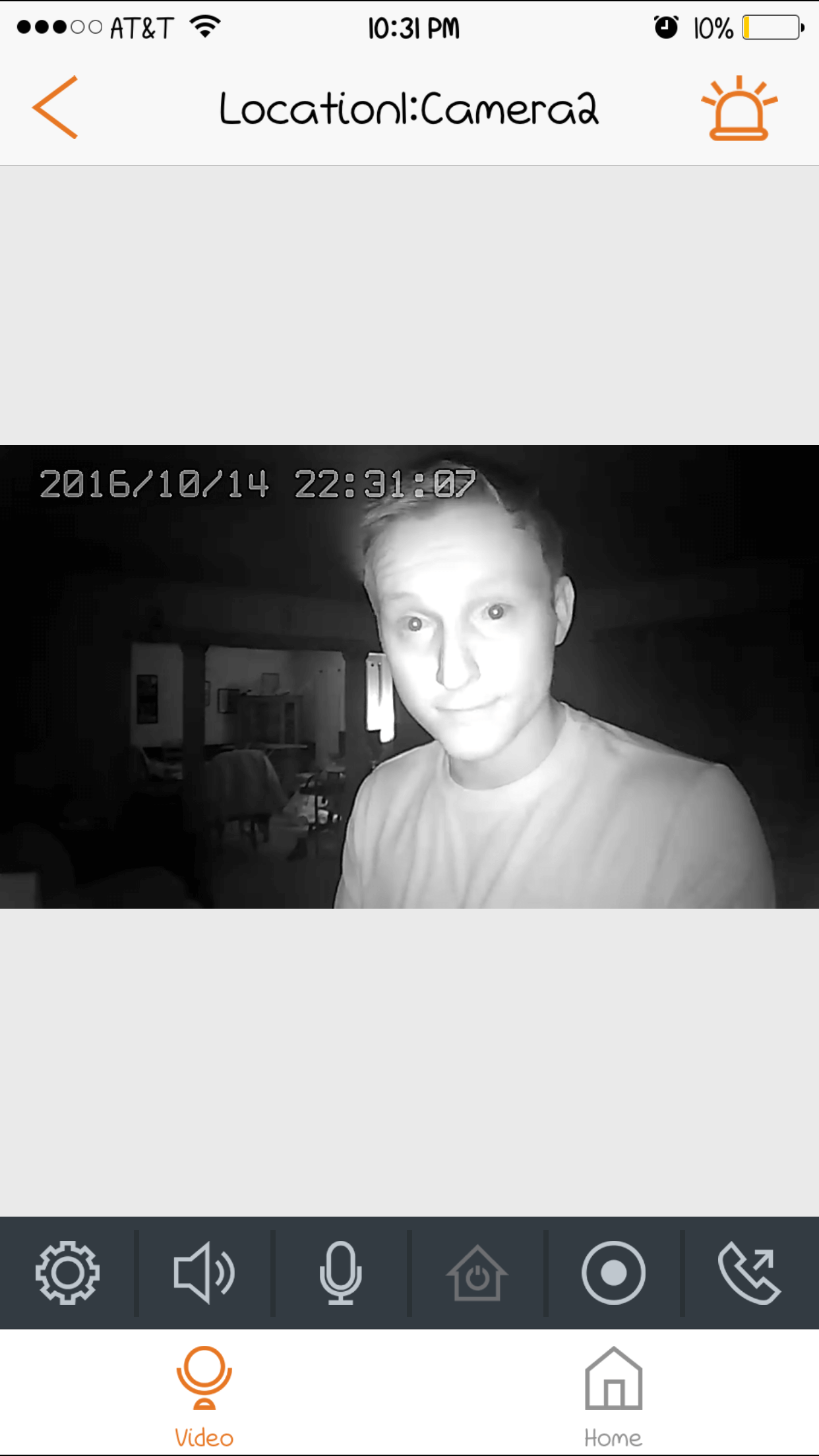 - Video – This is where you’re able to select and view your camera(s) and trigger events. You’re able to change the name of the location, trip alarms, listen in, and speak through the camera!