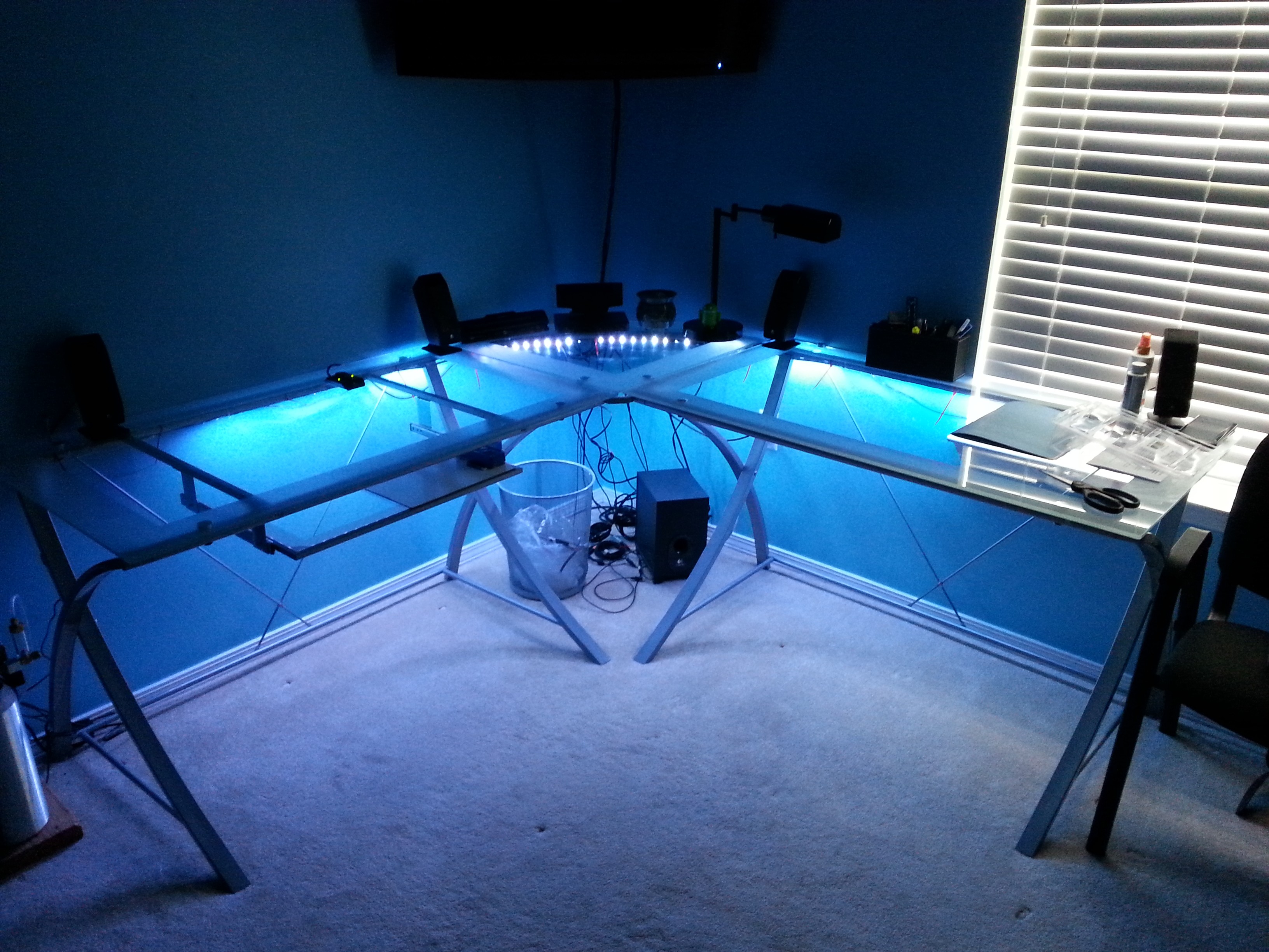 Overall, I think the lights add something special to my otherwise-ordinary glass desk. Using just a $25 LED kit and a couple of zip ties I was easily able to customize my workspace in about 30 minutes. If the directions were written clearer and explained step-by-step how the lights worked, I probably could have gotten this project done in 15 minutes… But for the money you can’t beat this product.