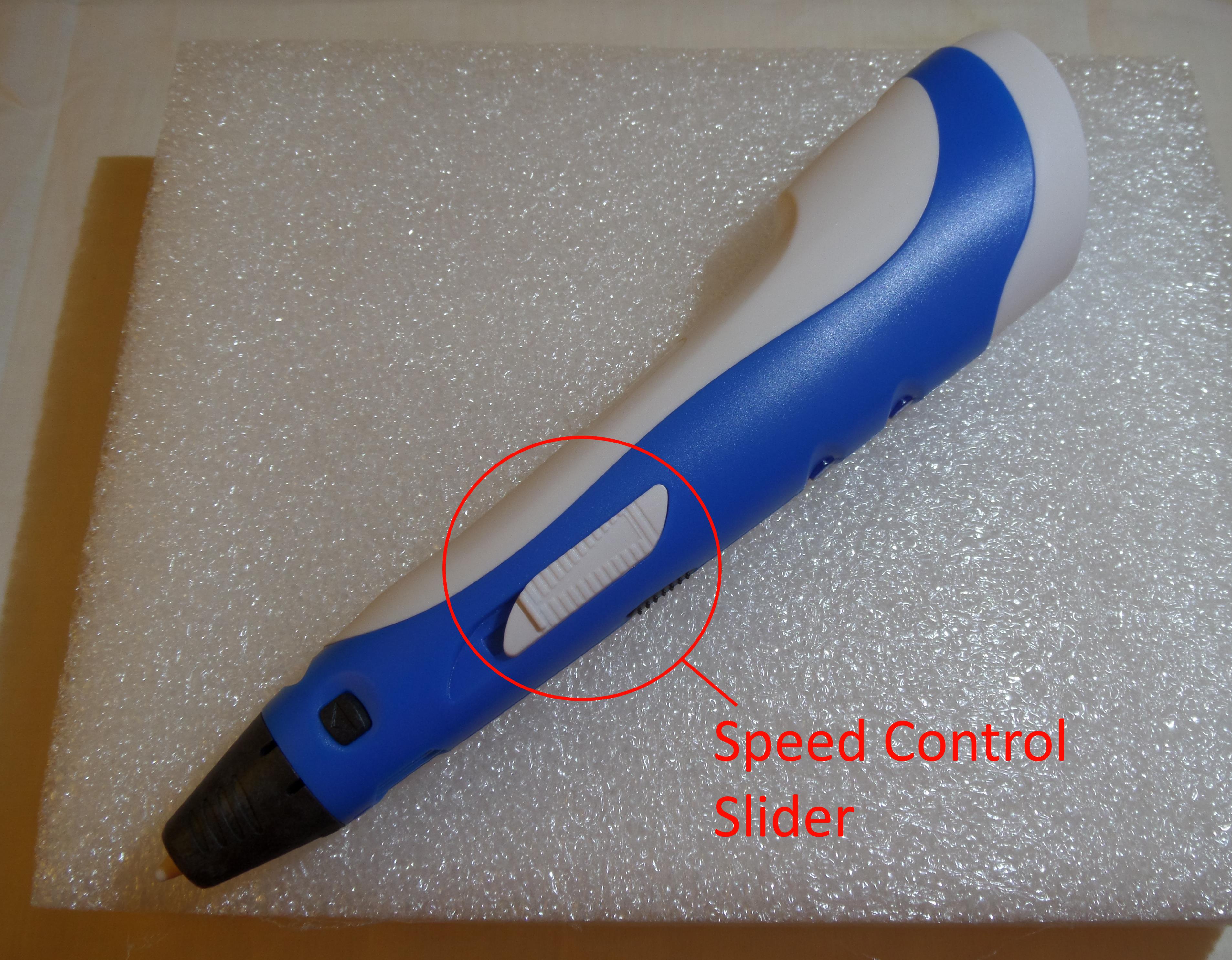 This slider allows you to control how fast the filament is fed through the pen.  Use it carefully, if you slide it too much a faster flow of filament will be fed through making it very difficult to control.
