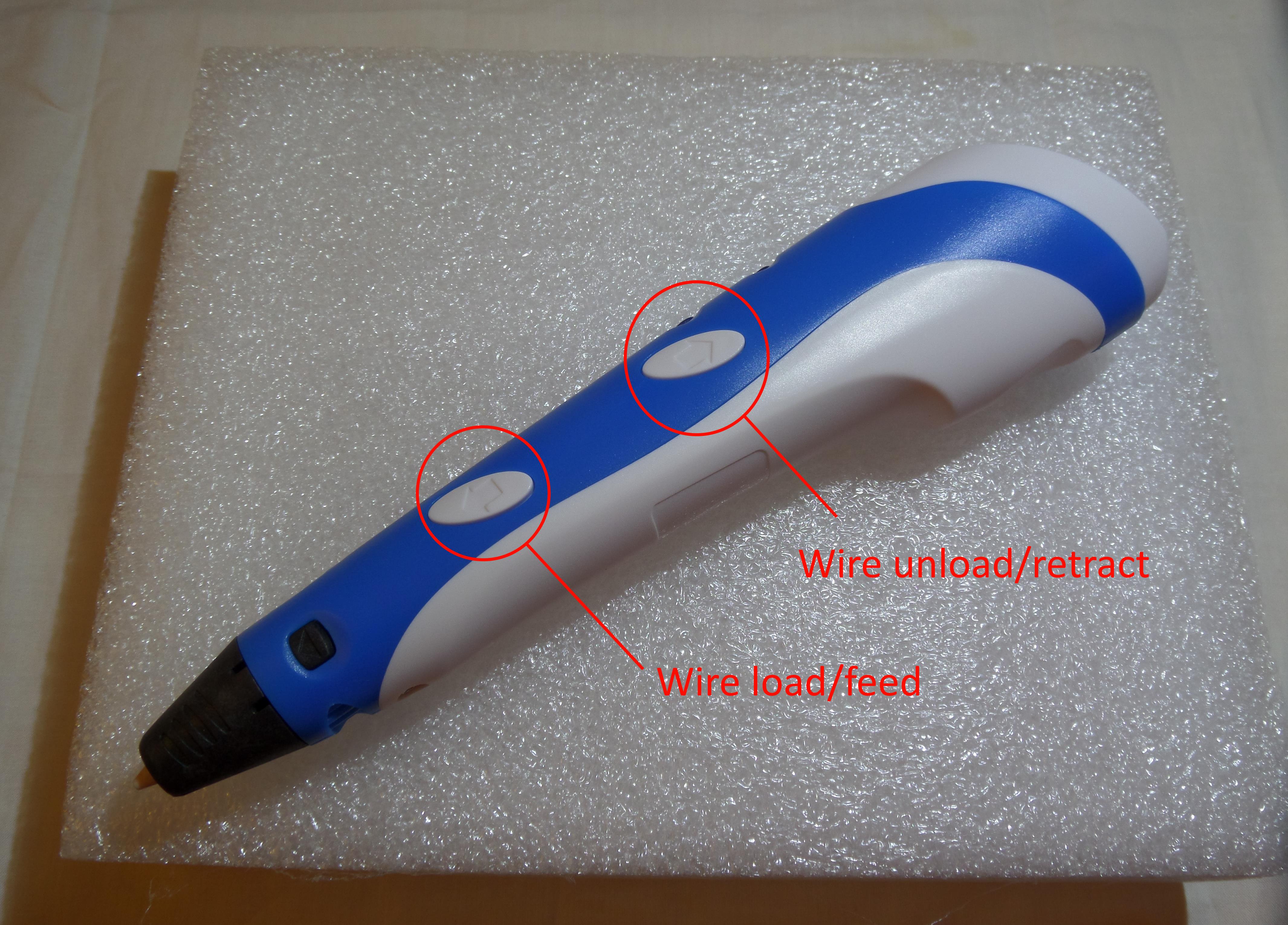This one shows you the buttons to load and unload the filament used to print with.  You need to press the button to load filament when drawing to feed the filament as it melts and unload button when you are done or changing color of the filament.
