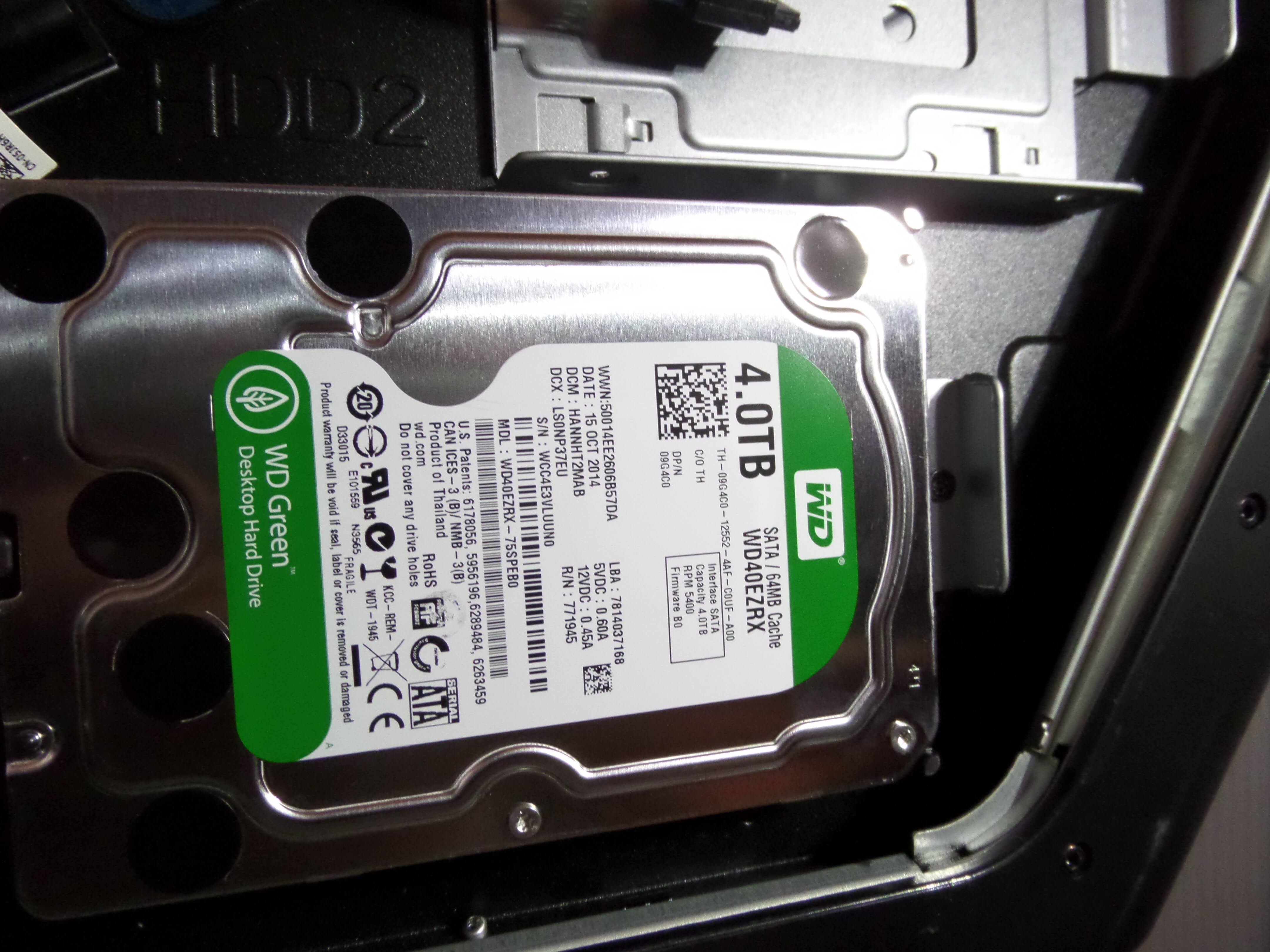 You can see, 2 of the 4 bays are being taken up by drives, the Samsung 256GB SSD and the Western Digital 4TB