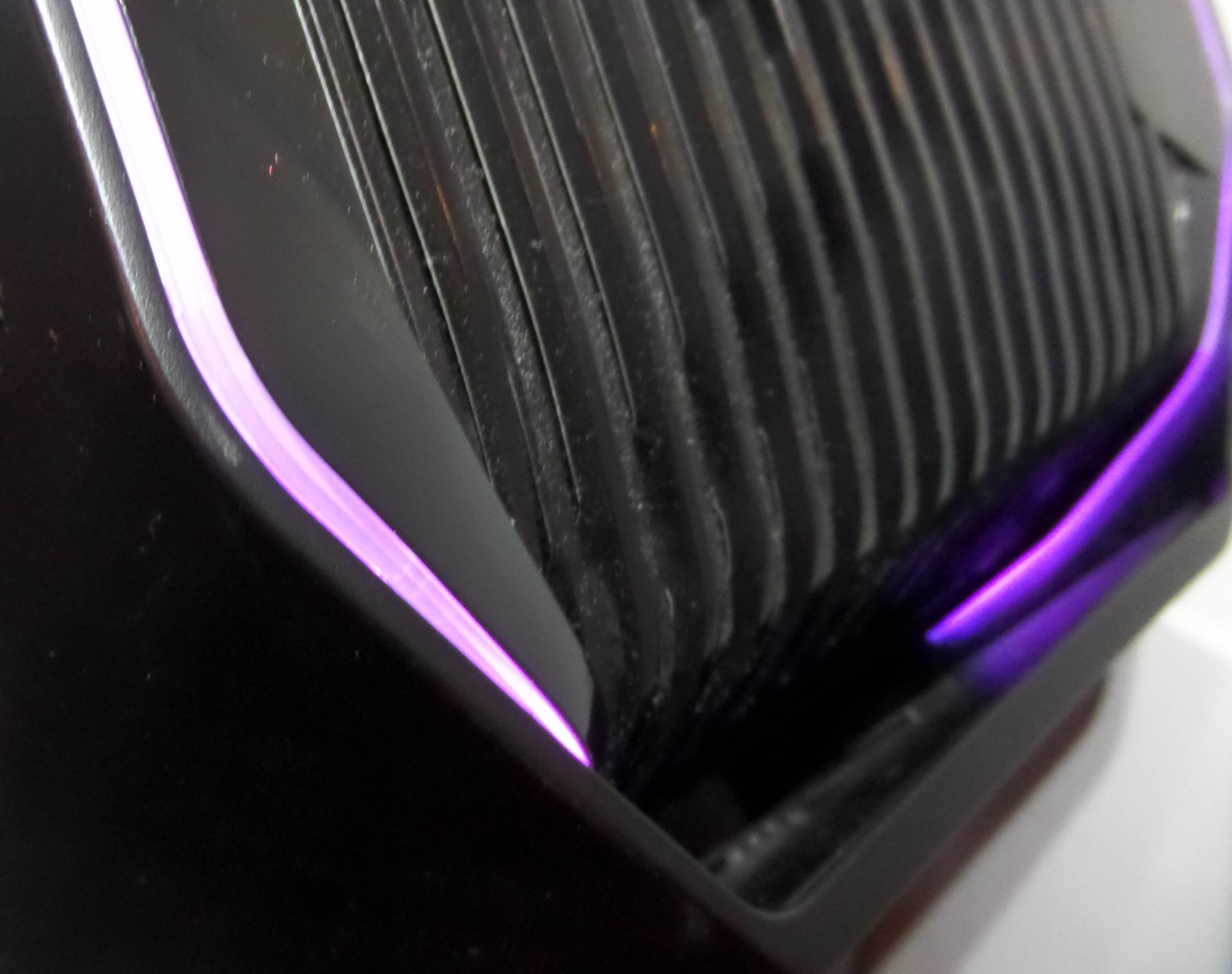 Aside from the 45-degree angle, some may think “Why would the case be triangle shaped like that, well it seems they put a lot of thought into the case, a lot. Many people for some reason put their cases in a cubby, hidden from the eyes your friends and not taking up space on the desk…. Taking up space, this is a piece of art and should be displayed as such. Well, the other reason they do it is aside from the cubby, devoid of breathing space (they need air too), some people push them up against the desk or a wall, these things need a way to exhaust some heat.
