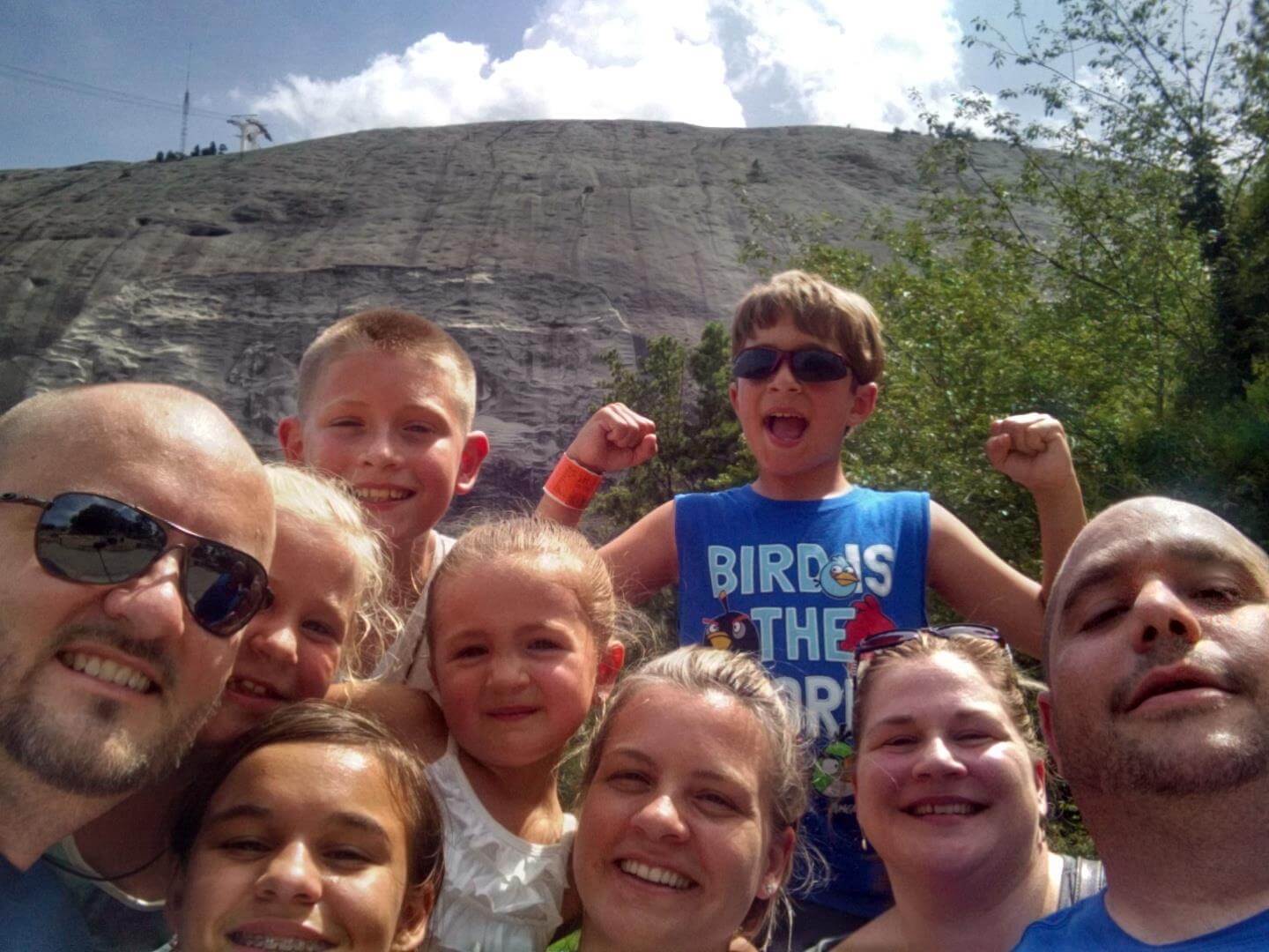 Here is a selfie I took at the base of Stone Mountain in Stone Mountain Georgia. I took many more at the top. Here is a pic of my family, oh yeah and the mountain too.