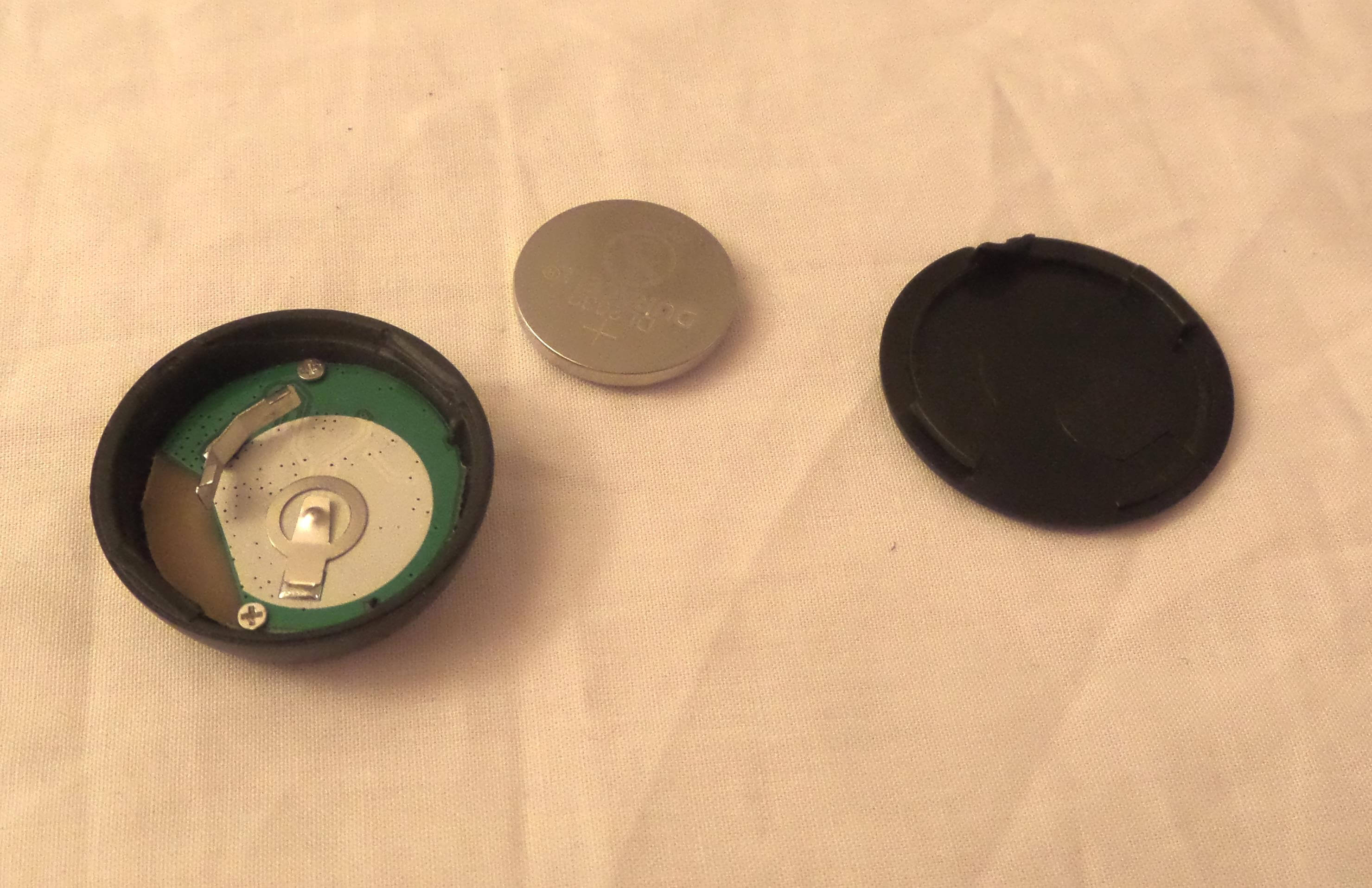 Taken apart, you can see the actual functional part of the unit, the in the middle the CR-2032 battery and on the right the top, it’s just a simple top, nothing more.