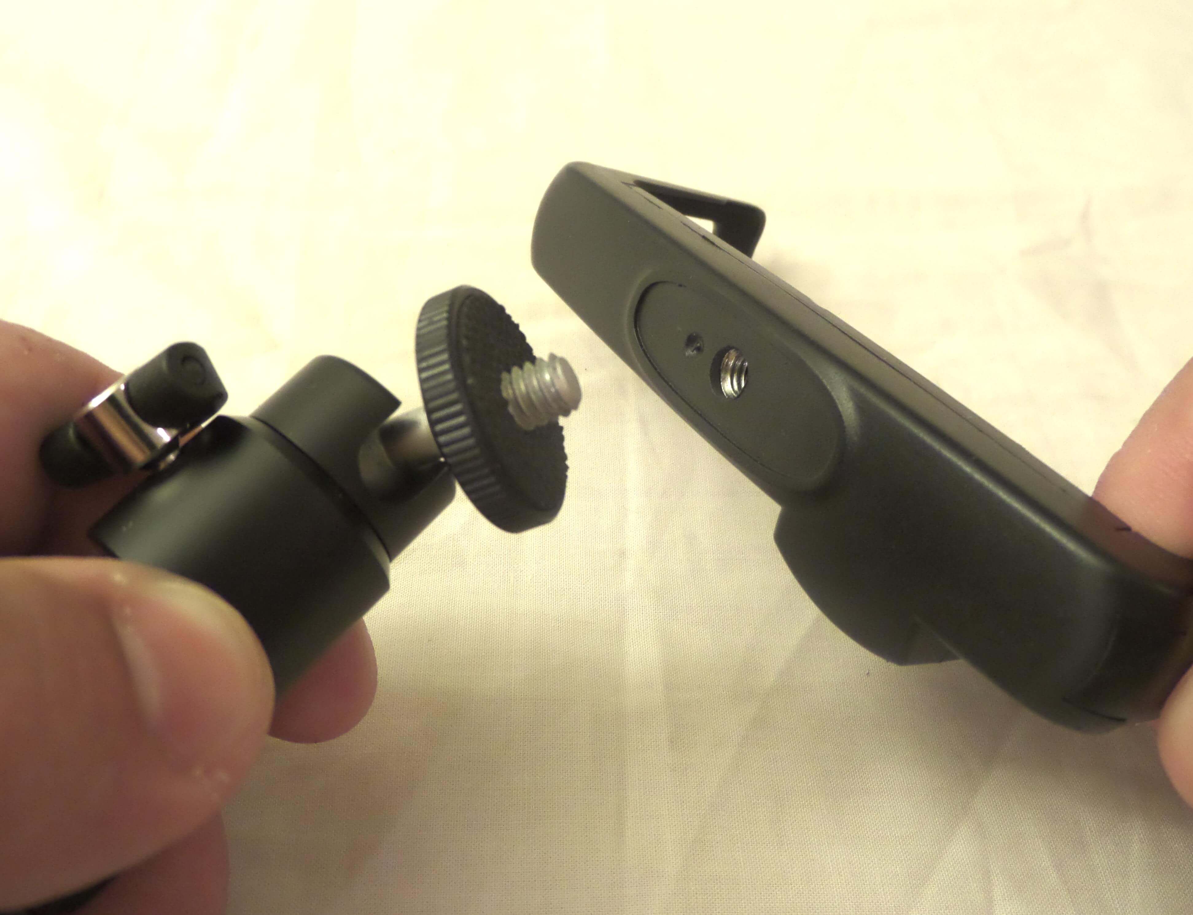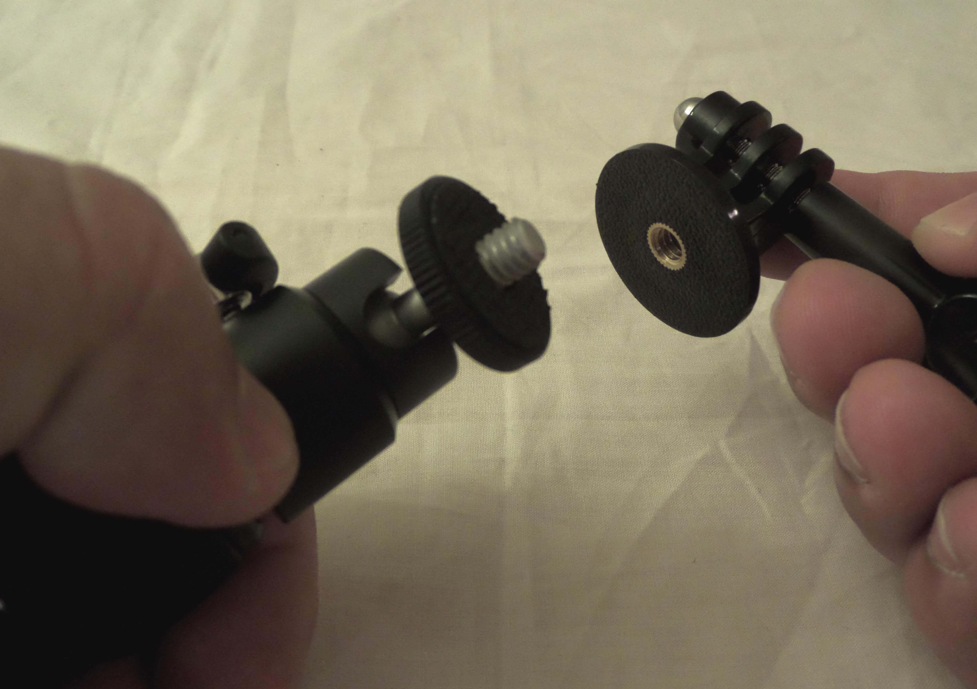Here is how the spacer looks like attached to the selfie-stick and about to be connected into the holder.