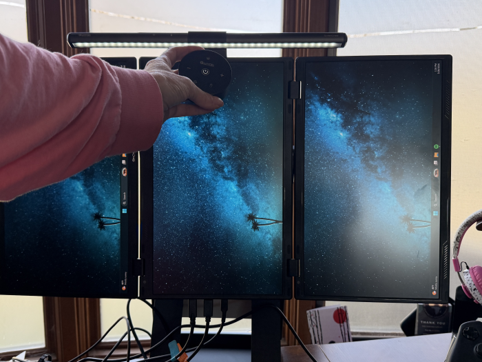 Another great thing about this monitor lamp is that it doesn’t have a fixed white color temperature like most are designed with. Instead, it allows you to adjust both the brightness intensity and the temperature.
